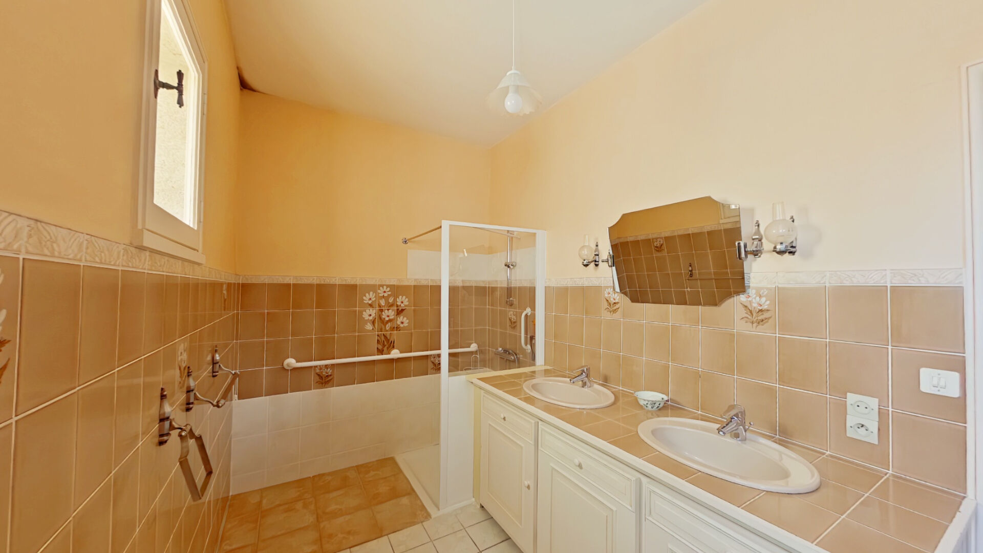 A l'étage : mezzanine, deux chambres, salle d'eau, grenier en partie aménagée.