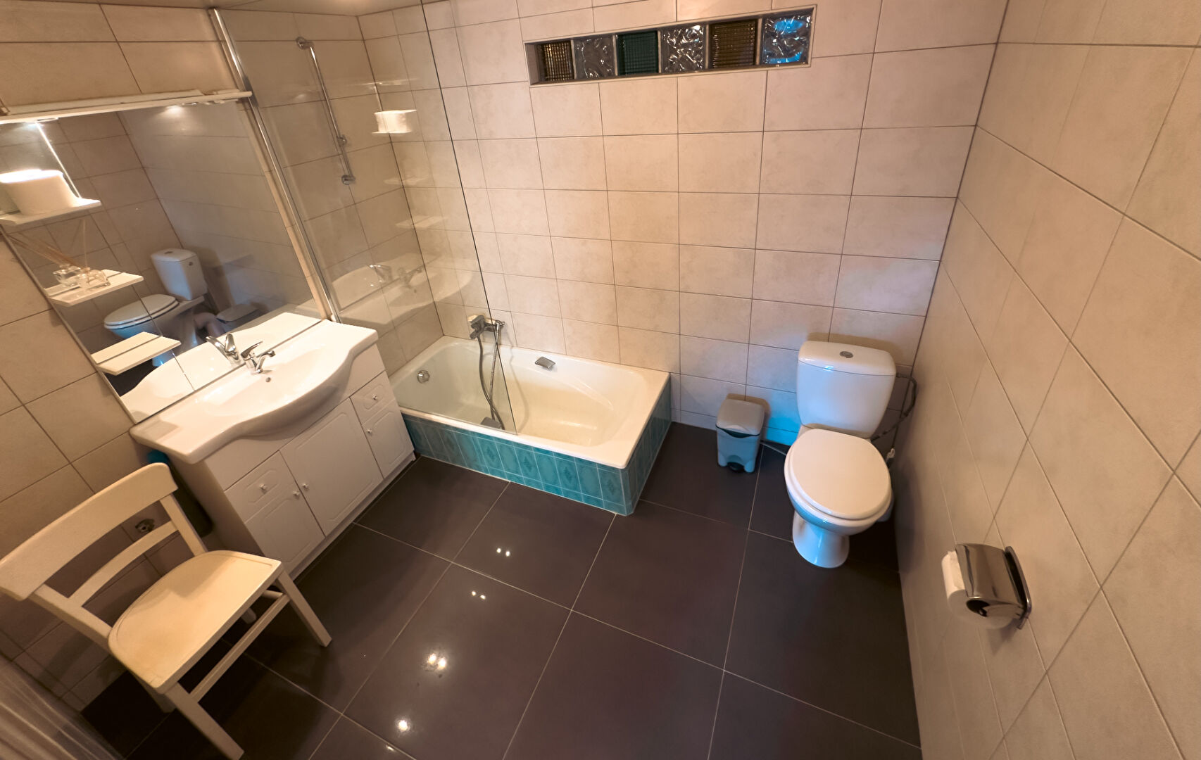 A ce jour la bâtisse propose un logement T2 de 70 m² habitables avec possibilité de location directe au RDC avec accès au jardin.
