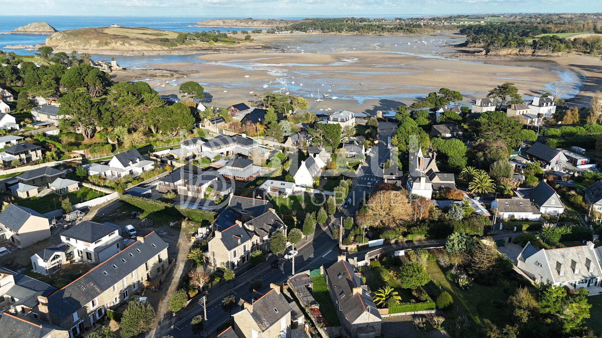 Entièrement rénovée avec des matériaux hauts de gamme vous serez séduits par son intérieur à la fois raffiné et chaleureux offrant 5 chambres, trois salles de bains, de beaux espaces de vie, une cuisine aménagée et équipée et une pièce détente et inspirante avec une échappée sur la mer et le Havre de Rothéneuf. Deux belles terrasses à l'est et au sud de la propriété. Deux emplacements de parking. Cellier de rangement.