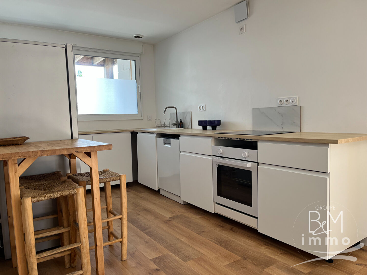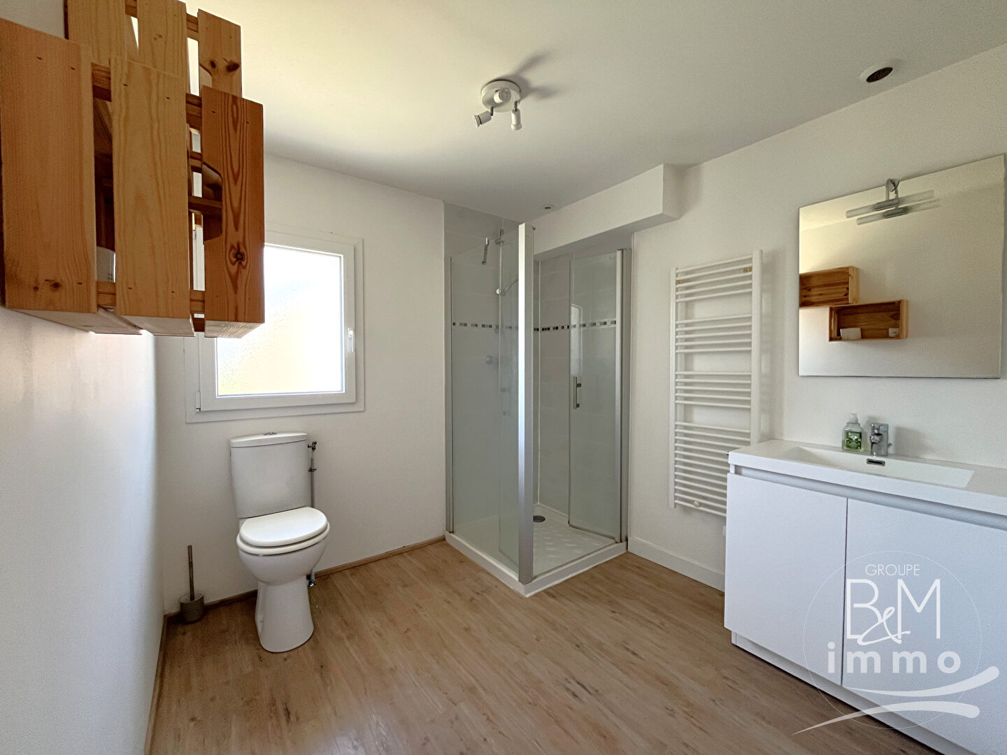 L'espace de vie de plus de 30 m², lumineux et convivial, comprend un salon ouvert sur une cuisine équipée. Une buanderie avec rangements vient compléter cet espace fonctionnel.