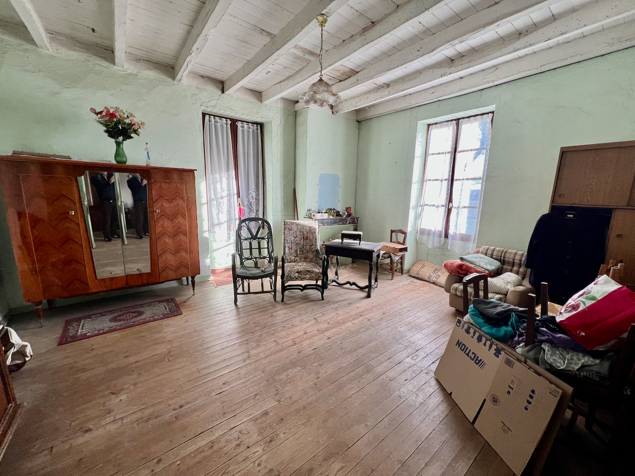 La bâtisse principale, datant probablement du début du XX? siècle, est habitable mais nécessite une rénovation importante pour la moderniser. Un agrandissement important est facilement envisageable grâce à son grenier aménageable de 180 m² et à ses volumes généreux.