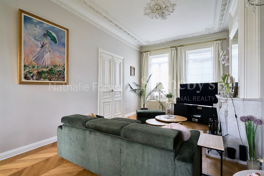 Le séjour traversant de 46 m², intégralement parqueté, profite d’une belle luminosité et d’un accès au jardin. Deux cheminées, dont une avec insert, ajoutent caractère et confort.
