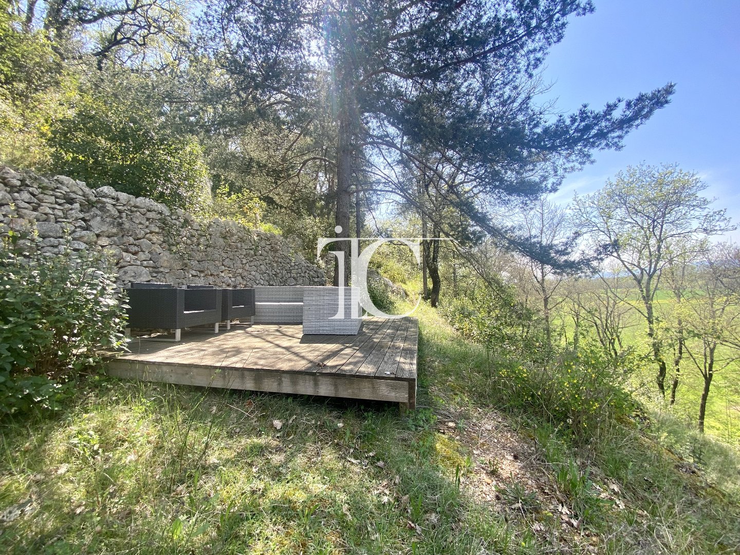 Situé en bordure de route, le garage voûté, 28m2, peut accueillir une activité libérale, artisanale ou commerciale. Deux tiers du terrain sont attenants en plusieurs terrasses au-dessus de la propriété, offrant une vue dominante sur les Cévennes et la campagne environnante. Quant au verger de quasiment 2000m2, il est à 50 mètres de la maison.