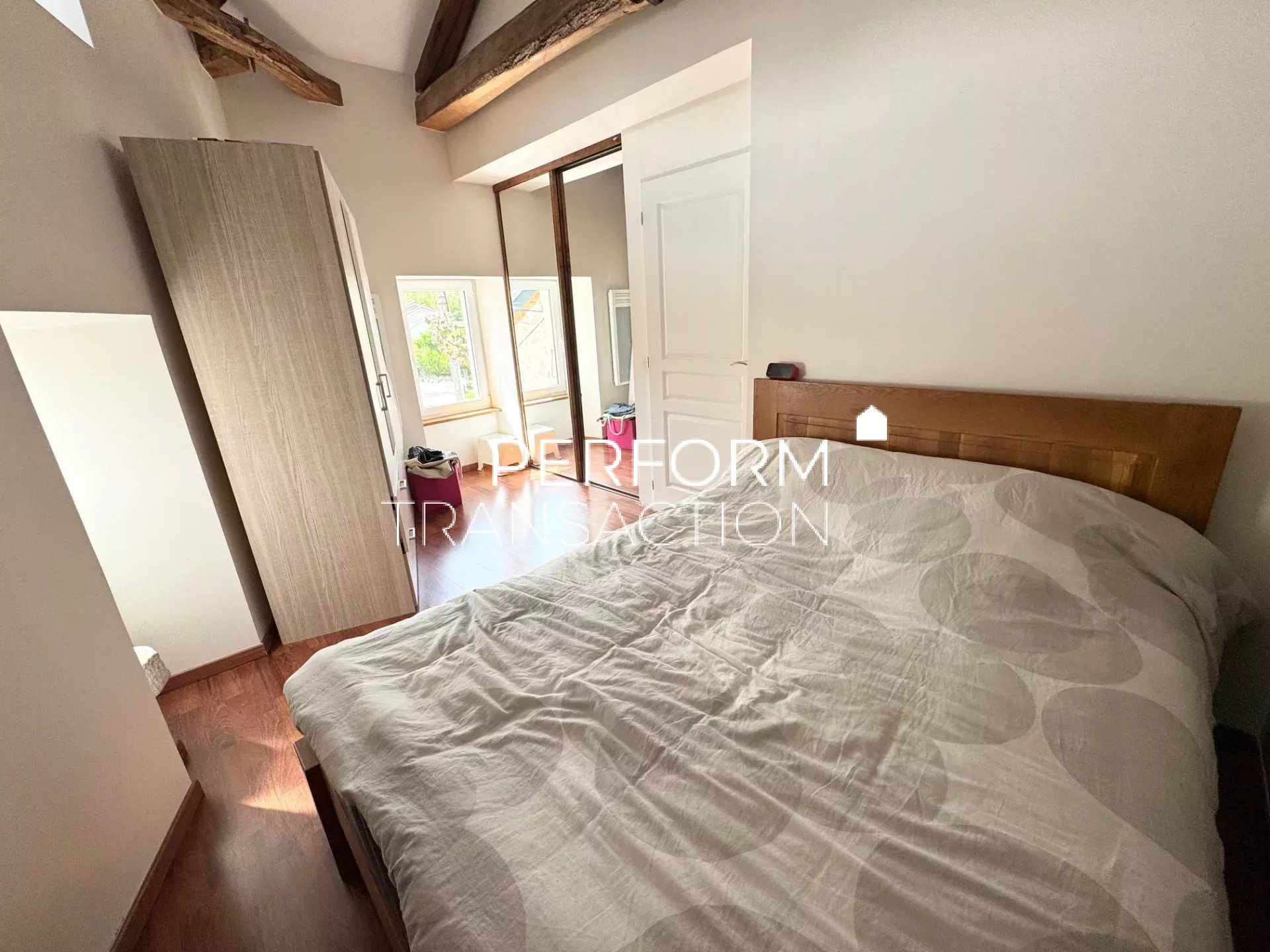 Cette ancienne grange mitoyenne d'un côté mais sans aucun vis à vis, a été rénovée entièrement et vous offre une superficie habitable d'environ 117m². Cette propriété unique allie confort, luminosité et espace extérieur très cocooning.