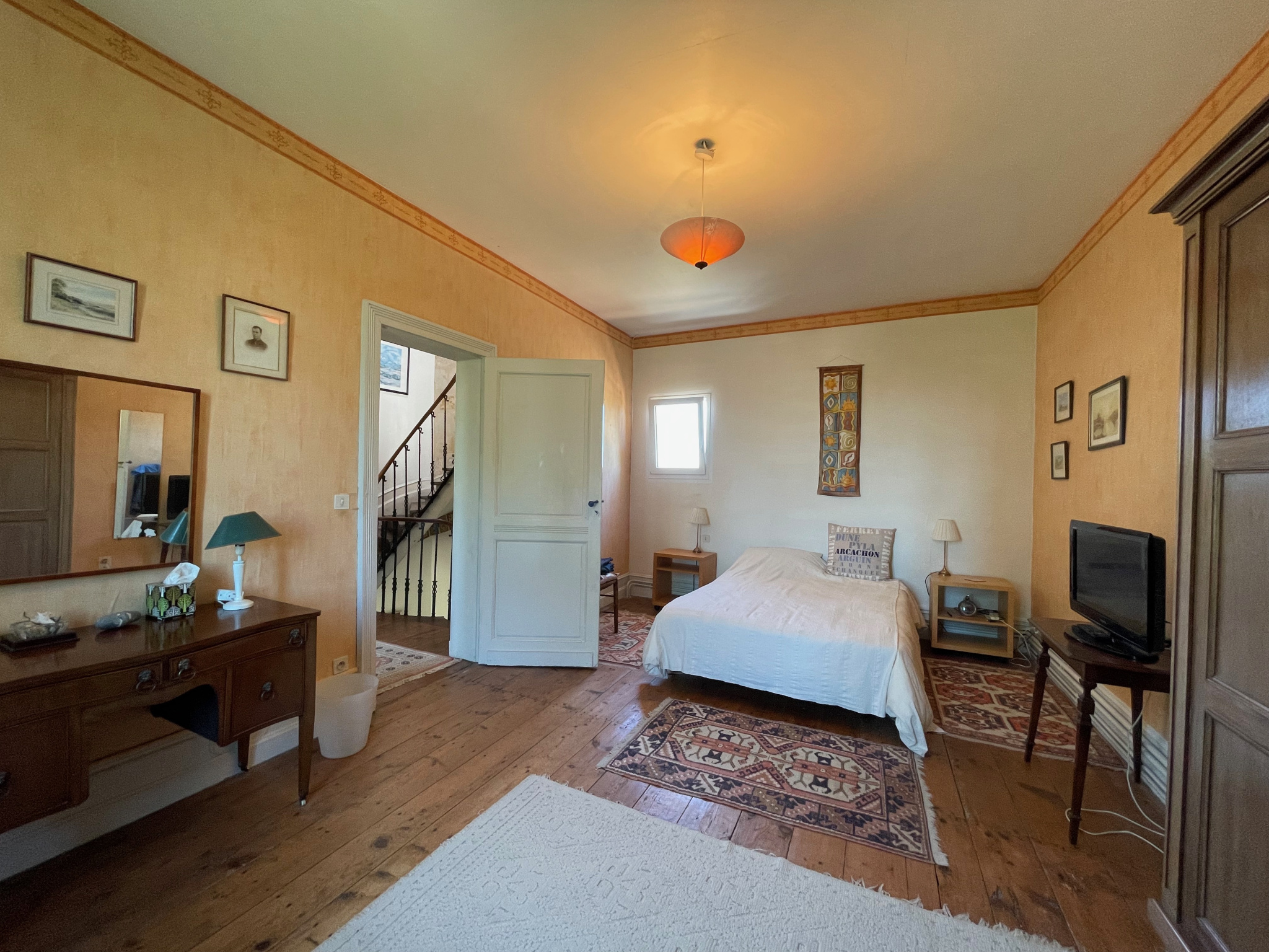 Sur le premier niveau, le palier dessert deux chambres de 21 et 28m2 avec cheminée et parquet ainsi qu'une salle de bain.