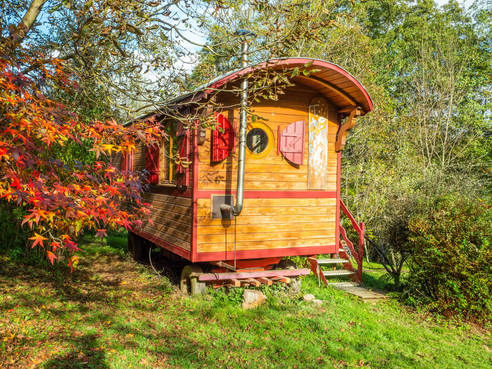 Le domaine s'étend de part et d'autre de la rivière avec un potager, des prairies, un verger ancien, une parcelle de bois, une mare, plusieurs sources et une petite plage. Dans ce petit paradis vert, les propriétaires ont placé deux superbes roulottes tout confort en bois pour l'hébergement des hôtes ou leurs activités en télétravail.