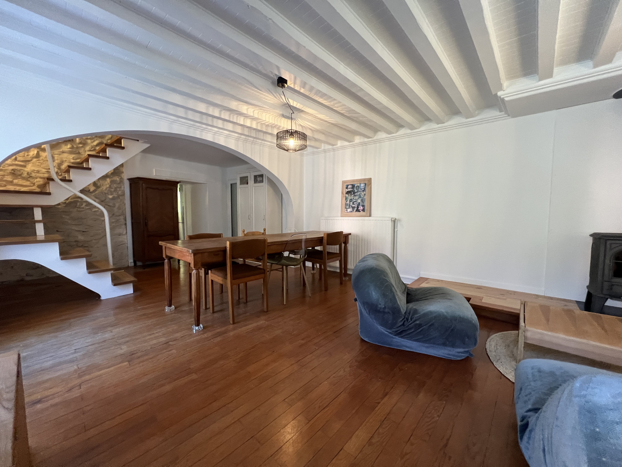 Grande pièce qui sert de réception pour les hôtes, mais qui peut également être une entrée (vestiaire et garde-manger), puis une cuisine entièrement équipée. De là, se trouve le salon/salle à manger principal avec son poêle à bois, ses murs enduits à la chaux et ses fenêtres donnant sur la terrasse ensoleillée de 30 mètres carrés. Plus loin, un petit salon télé/lecture mais qui pourrait aussi être une chambre, avec sa vue sur la rivière et son écrin de verdure. La « salle des meules» avec l'ancien équipement, est intacte et offre un fabuleux salon qui s'ouvre sur une terrasse couverte donnant sur la rivière. Il y a également une rochelle/mezzanine pour les enfants et les adolescents avec des livres et des jeux (ou un coin bureau avec les étagères sur mesure)