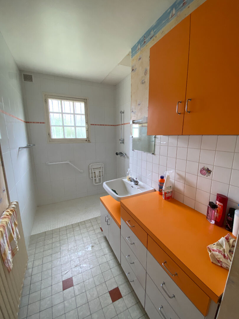 Pavillon 122 m² habitables comprenant : entrée, séjour / salon 27 m², cuisine 13 m² aménagée, trois chambres de plain-pied (parquet massif), salle d'eau et un wc. A l'étage : palier desservant deux chambres (parquet massif), wc, grenier aménageable. Sous-sol complet : cave, double garage. Chauffage central fuel, survitrage bois. Terrain 482 m² clos.