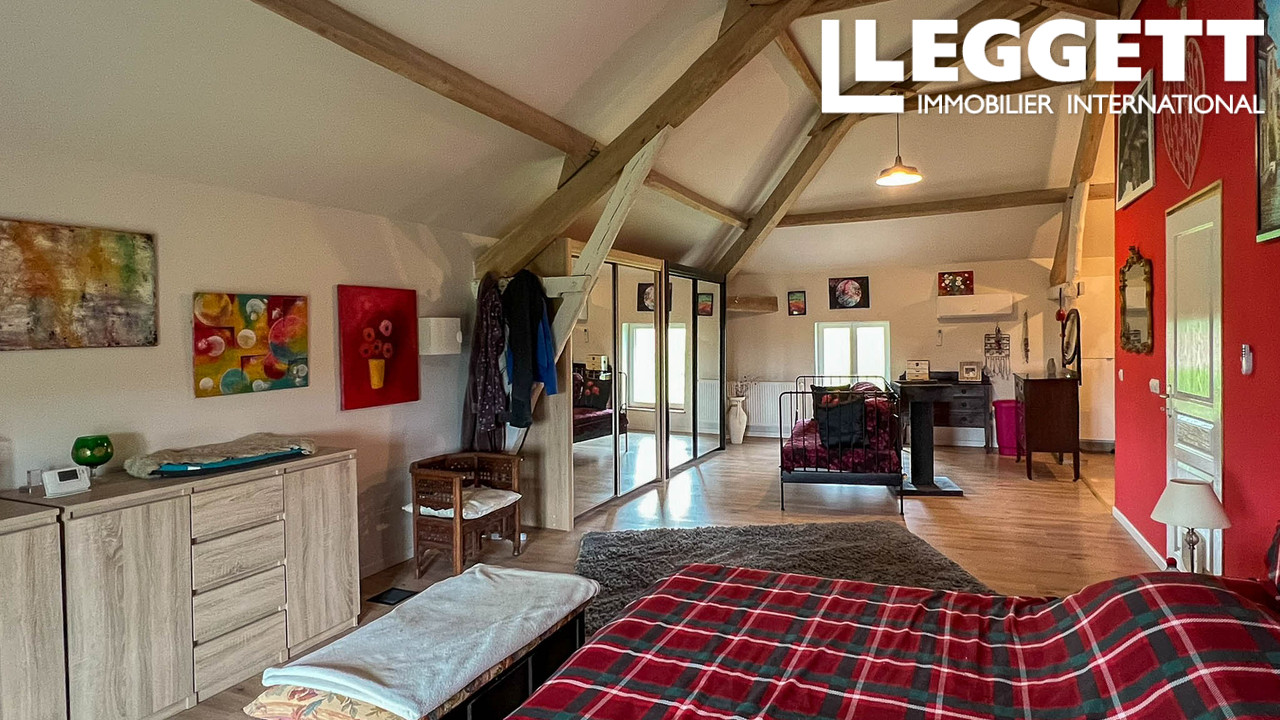 Implantée sur un terrain de 2 hectares, la maison propose des intérieurs spacieux et lumineux avec 3 grandes chambres et des espaces de vie élégants, à l'intérieur comme à l'extérieur -- idéals pour se détendre ou recevoir. Plusieurs dépendances pleines de caractère complètent l'ensemble, offrant de nombreuses possibilités : ateliers, rangements ou projets divers.