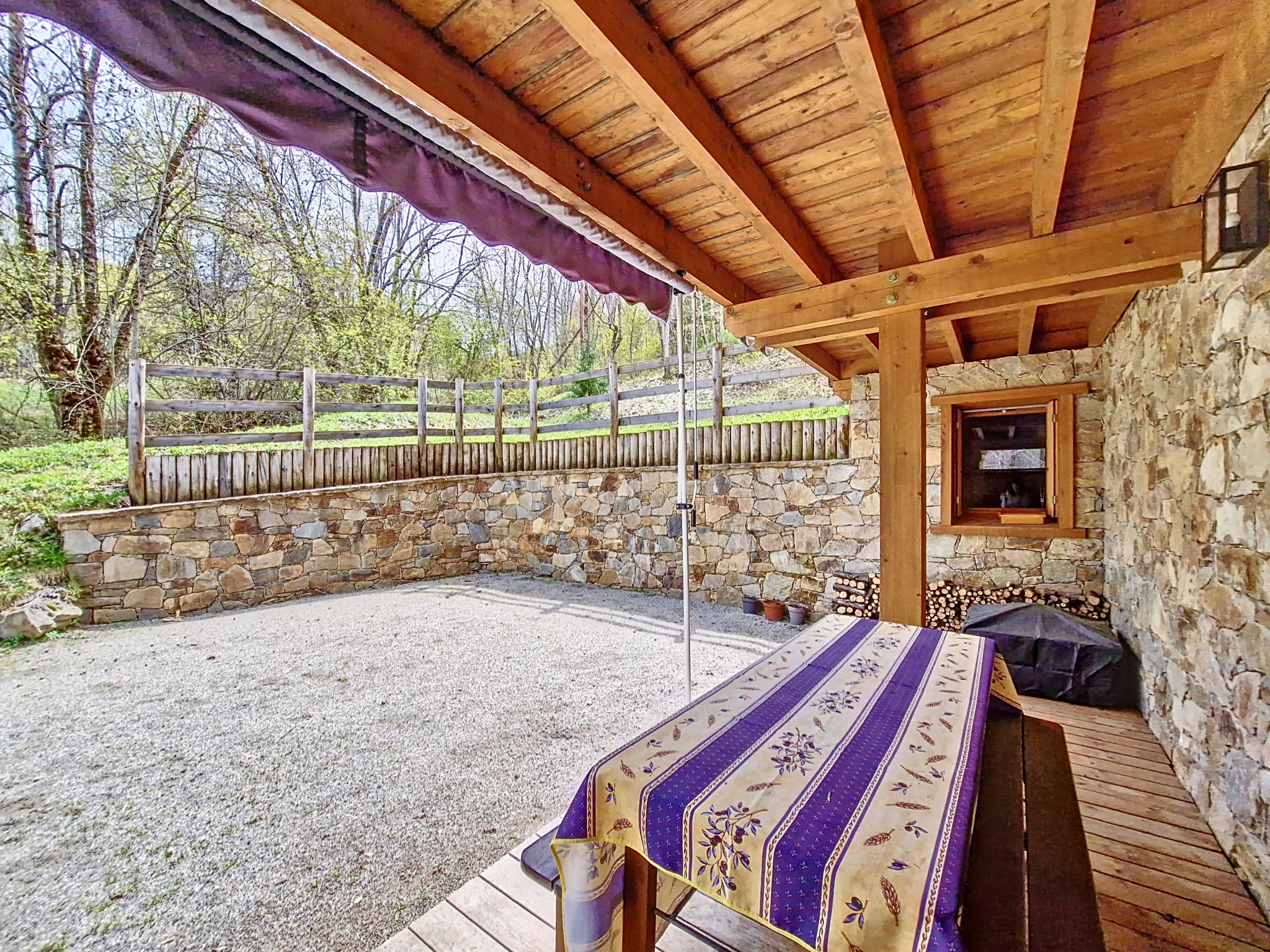 Un très clair et agréable salon d'environ 22m2 avec poêle à bois et balcon filant en L de 20m2 .