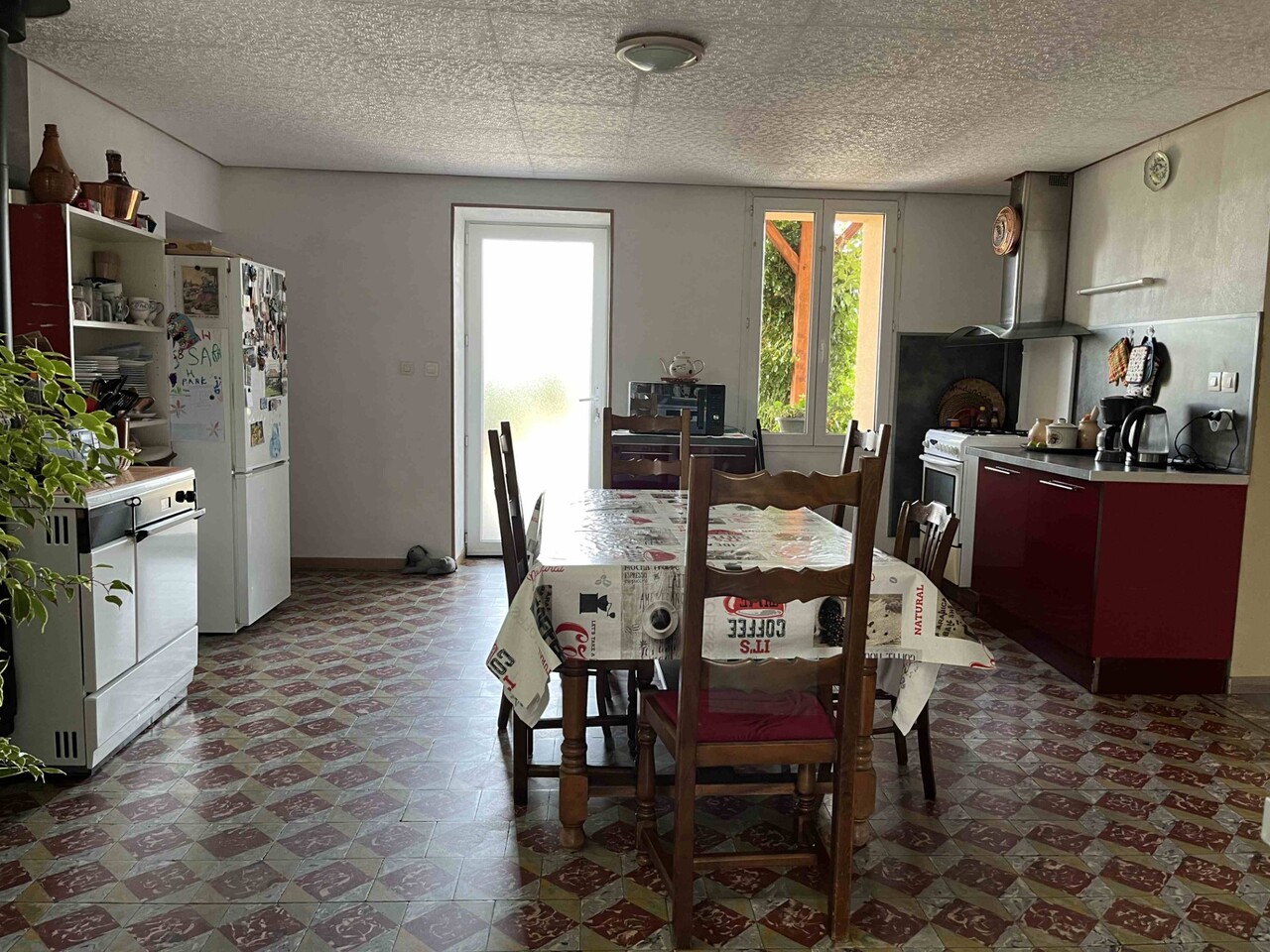 A VENDRE, AXE TOURNUS-LOUHANS, proche CUISERY, vaste ferme rénovée de type longère, 250 m² habitables principalement de plain-pied, 10 pièces sur terrain clos et arboré de 2200 m² avec puits et dépendances. L'habitation comprend une vaste pièce de vie avec salle à manger, espace salon, cuisine aménagée, buanderie, salle de bains avec toilettes, cinq chambres, une pièce de détente/salon, une salle d'eau et d'autres toilettes séparées. Toutes les pièces de vie du rez-de-chaussée s'ouvrent sur l'extérieur avec des baies vitrées. Au dessus : deux chambres mansardées en enfilade avec accès extérieur. La maison est équipée d'un poêle à granules dans la pièce de vie et d'un poêle à bois dans la cuisine qui complètent le chauffage central au gaz de ville avec chaudière de 2021. L'isolation est complète et les huisseries sont en double vitrage PVC. L'électricité et l'assainissement (fosse septique) sont aux normes. Toutes les toitures sont en très bon état. Cette maison est adaptée pour recevoir des personnes à mobilité réduite. Elle est idéale pour une famille d'accueil. Vaste terrasse couverte exposée Sud-Ouest et des dépendances attenantes. Deux dépendances séparées et un puits. La situation est dominante et dégagée sur la campagne. L'environnement est très calme, non loin des commodités et écoles de Cuisery.