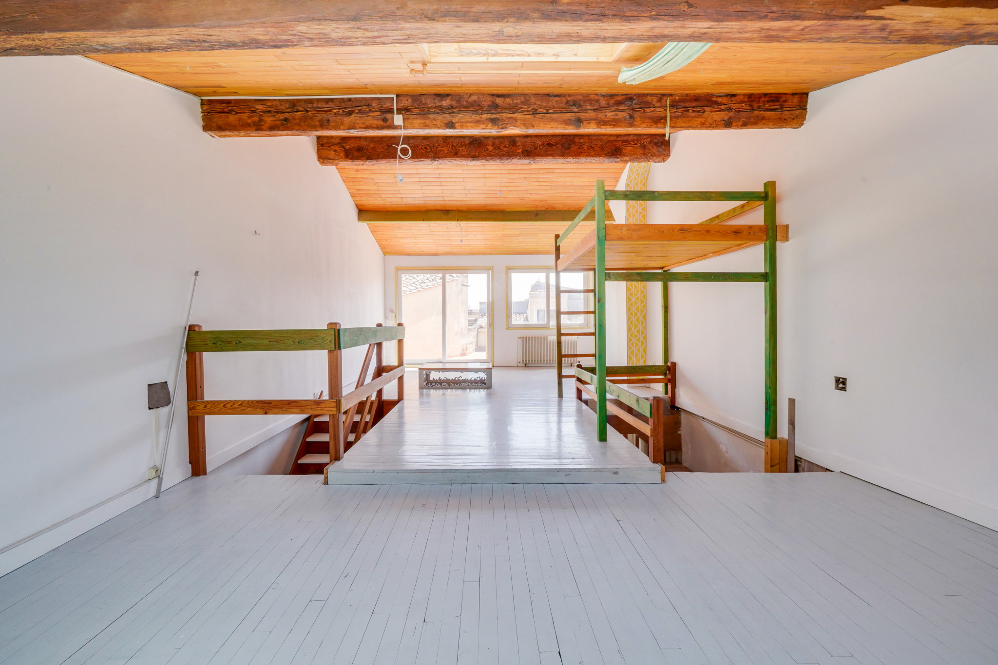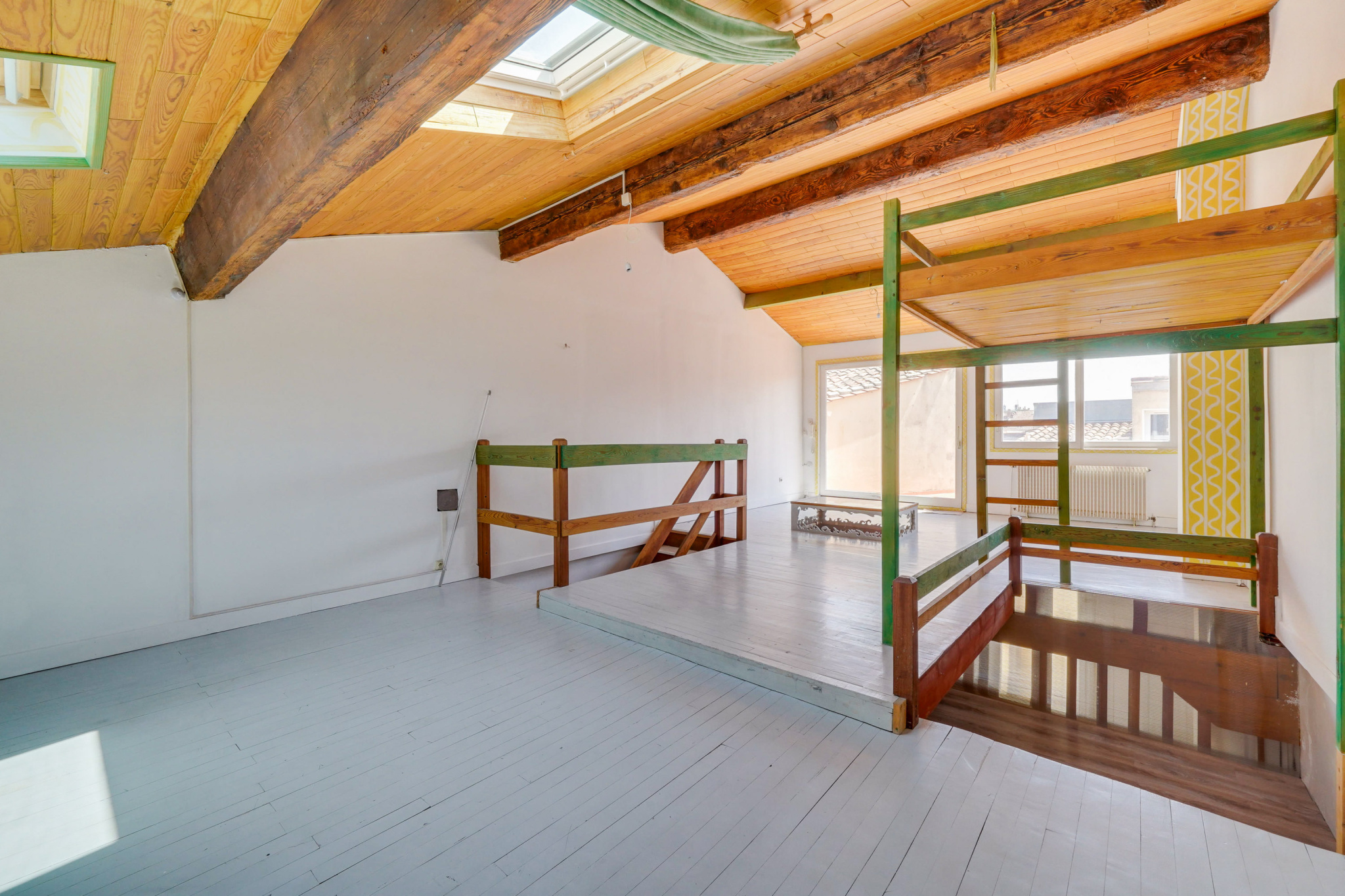Dans une jolie rue calme du quartier à deux pas de la place, ce duplex à remettre aux goûts du jour, occupe les deux derniers niveaux de ce charmant petit immeuble en pierre à la jolie façade. Le deuxième étage se compose aujourd'hui d'un palier, d'une cuisine / salle à manger, d'une belle chambre parentale avec accès à la terrasse, d'une deuxième grande chambre, d'une salle d'eau. La magnifique pièce de vie occupe le dernier étage et donne directement sur la belle terrasse avec vue. Possibilité de créer une troisième belle chambre.