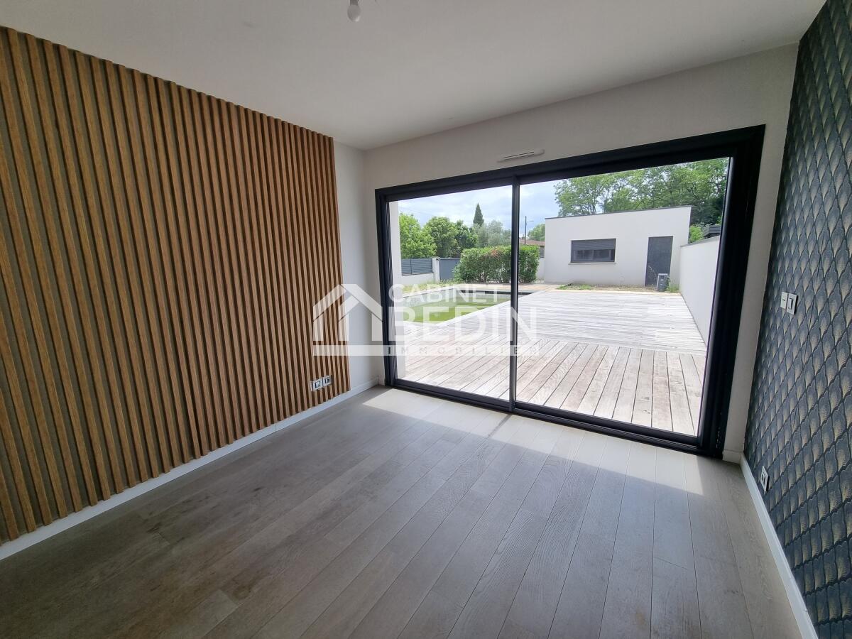 CONTEMPORAINE DE 5 CHAMBRES AVEC GARAGE. A deux pas des lignes de bus, des commerces et des écoles, cette vaste maison contemporaine s'ouvre largement sur l'extérieur. Très lumineuse, elle a été réalisée aux normes RT2012, avec de beaux matériaux afin d'optimiser ses performances énergétiques. Équipée de domotique, elle dispose entre autres de volets électriques avec commande centralisée, d'un visiophone, d'une pompe à chaleur, de planchers chauffants et d'un chauffe-eau thermodynamique. Le rez-de-chaussée se compose d'une grande pièce à vivre traversante, prolongée par une grande cuisine équipée avec un îlot central. La suite parentale de plain-pied dispose d'une salle de bains et d'un dressing. Au 1er étage, les 4 grandes chambres disposent de balcons et terrasses sur verdure et d'une grande salle de bains avec baignoire et douche italienne. Le jardin calme et clos est arboré. Il est agrémenté d'une grande terrasse qui encadre la piscine au sel. Enfin un grand garage avec une cave complète cette offre. Une maison originale et fonctionnelle à deux pas de la barrière de Bègles, du centre ville de Bordeaux et de la gare Saint Jean. . Les informations sur les risques auxquels ce bien est exposé sont disponibles sur le site Géorisques : www. georisques. gouv. fr. Montant estimé des dépenses annuelles d?énergie pour un usage standard : entre 720 et 1020 Euros/an (année de référence 2023)