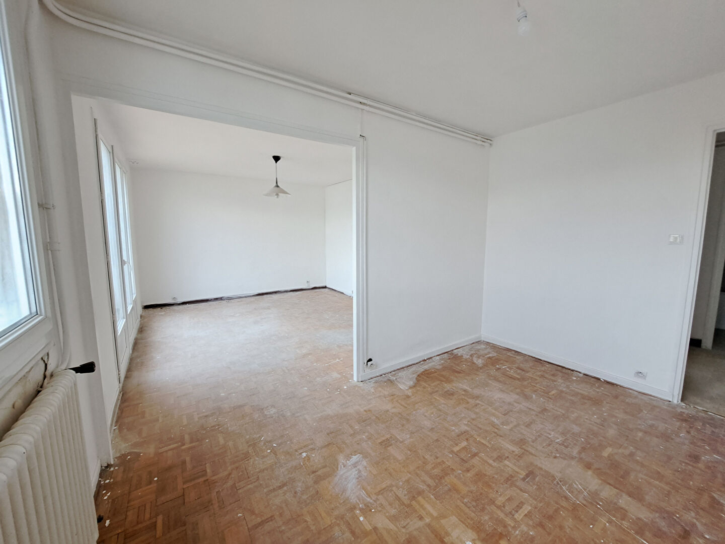 Découvrez cet appartement à rénover au 4ème étage d'une copropriété, comprenant : entrée, séjour, salon (possibilité 3ème chambre), cuisine, 2 chambres, SDB, toilette, loggia, balcon, cave.