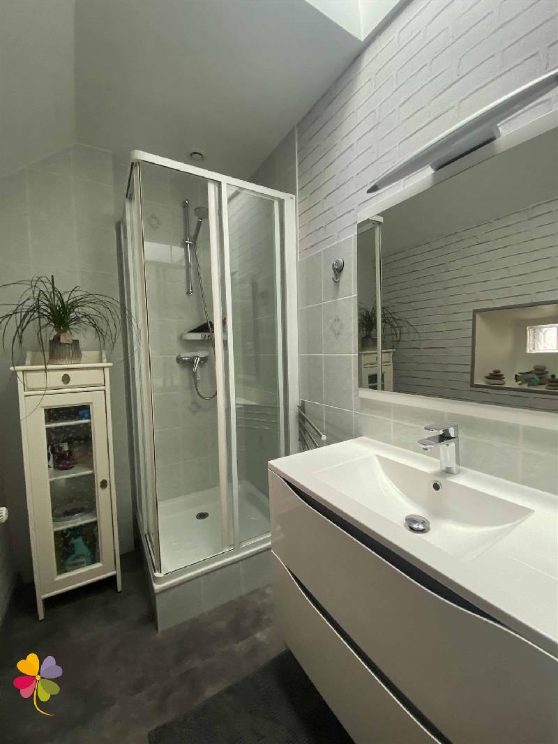 A l'étage, deux chambres, une salle de douche et un toilette.