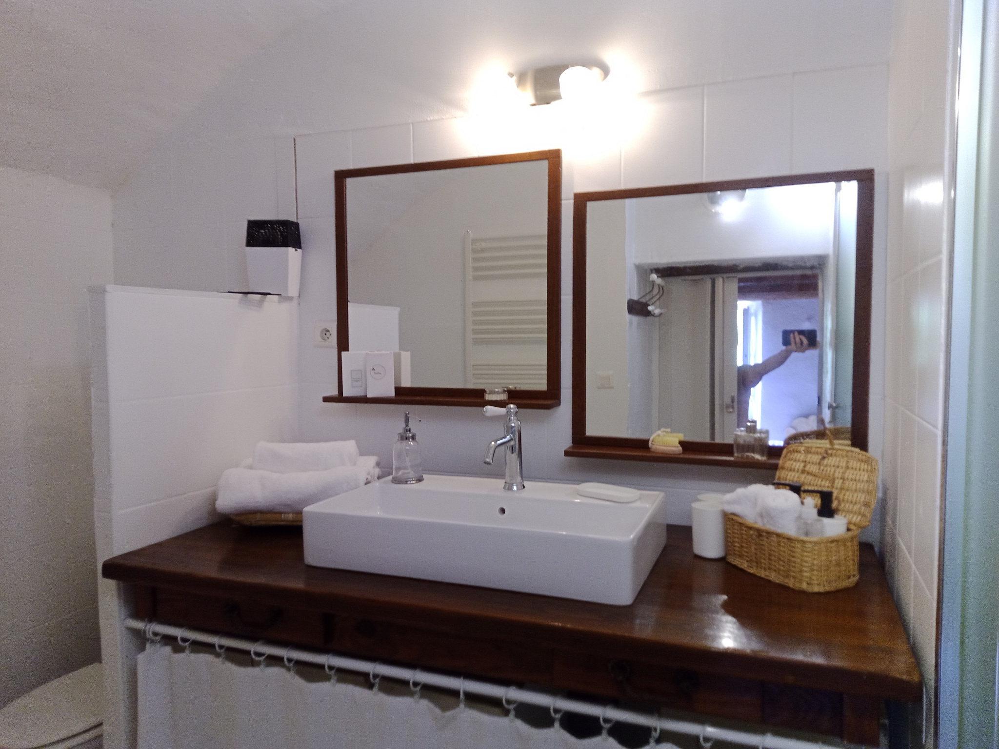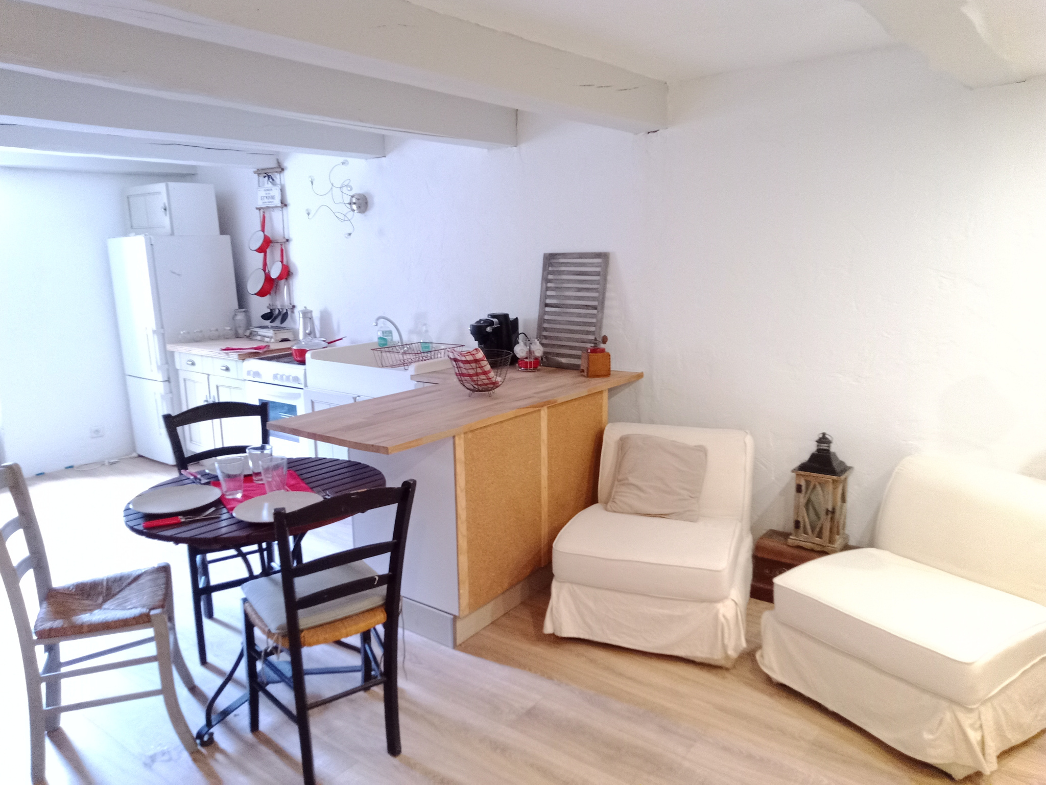 - Au premier étage 1 appartement type T2 de 55.63m2 pouvant servir de gite : Un séjour avec cuisine ouverte, une chambre, 1 salle de douche avec wc.