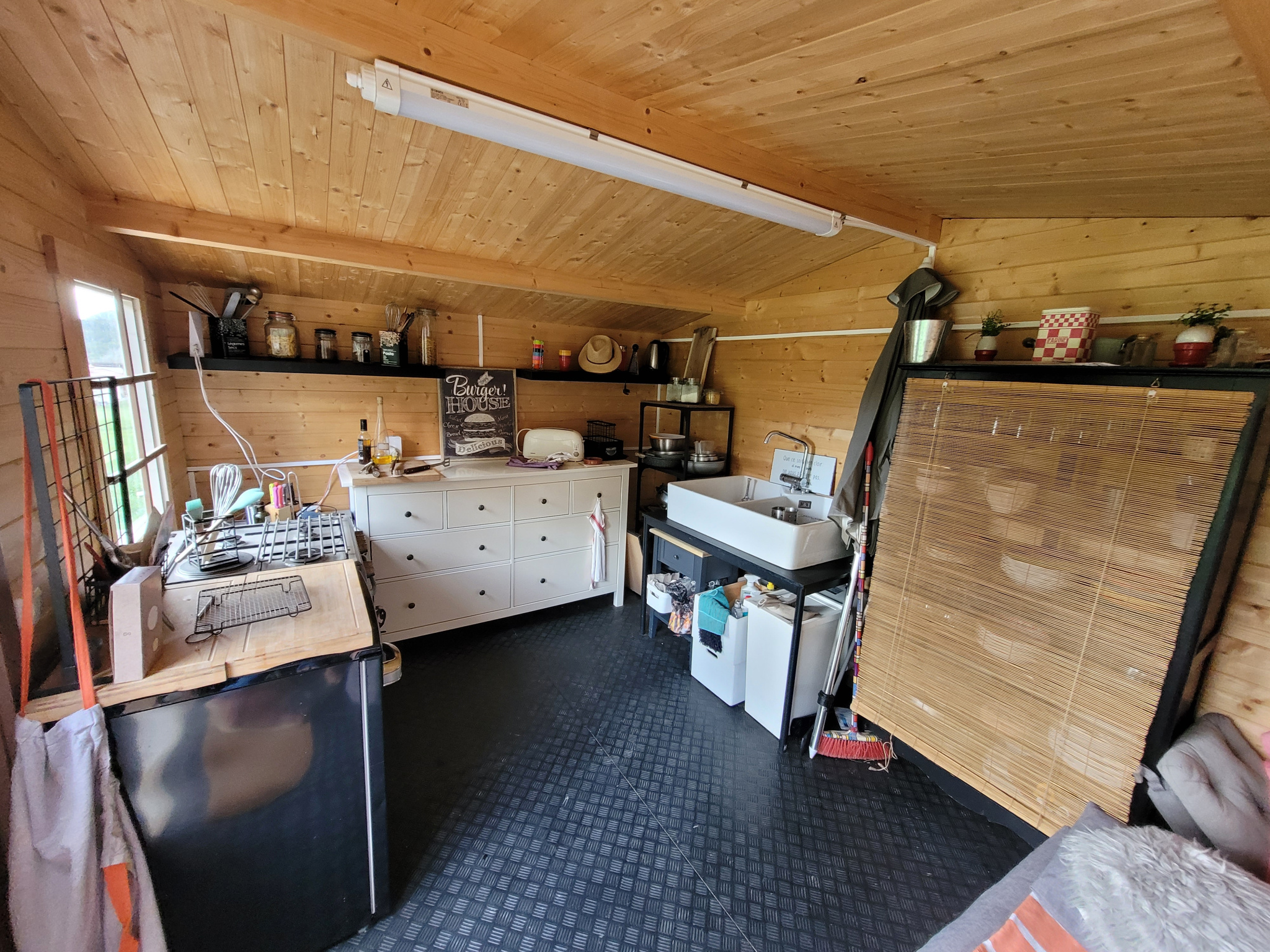 - Terrain séparé : Un chalet en bois avec un coin cuisine et couchage.
