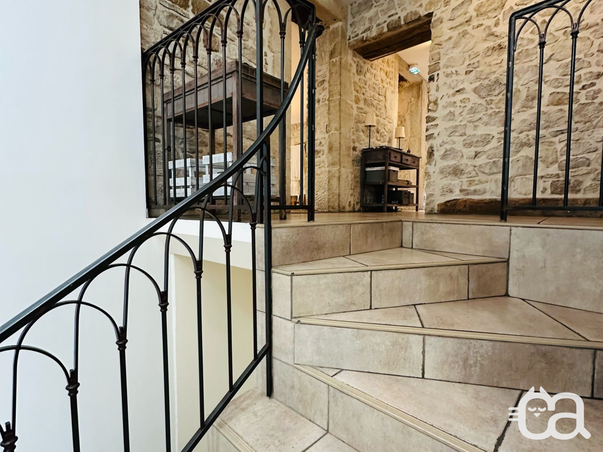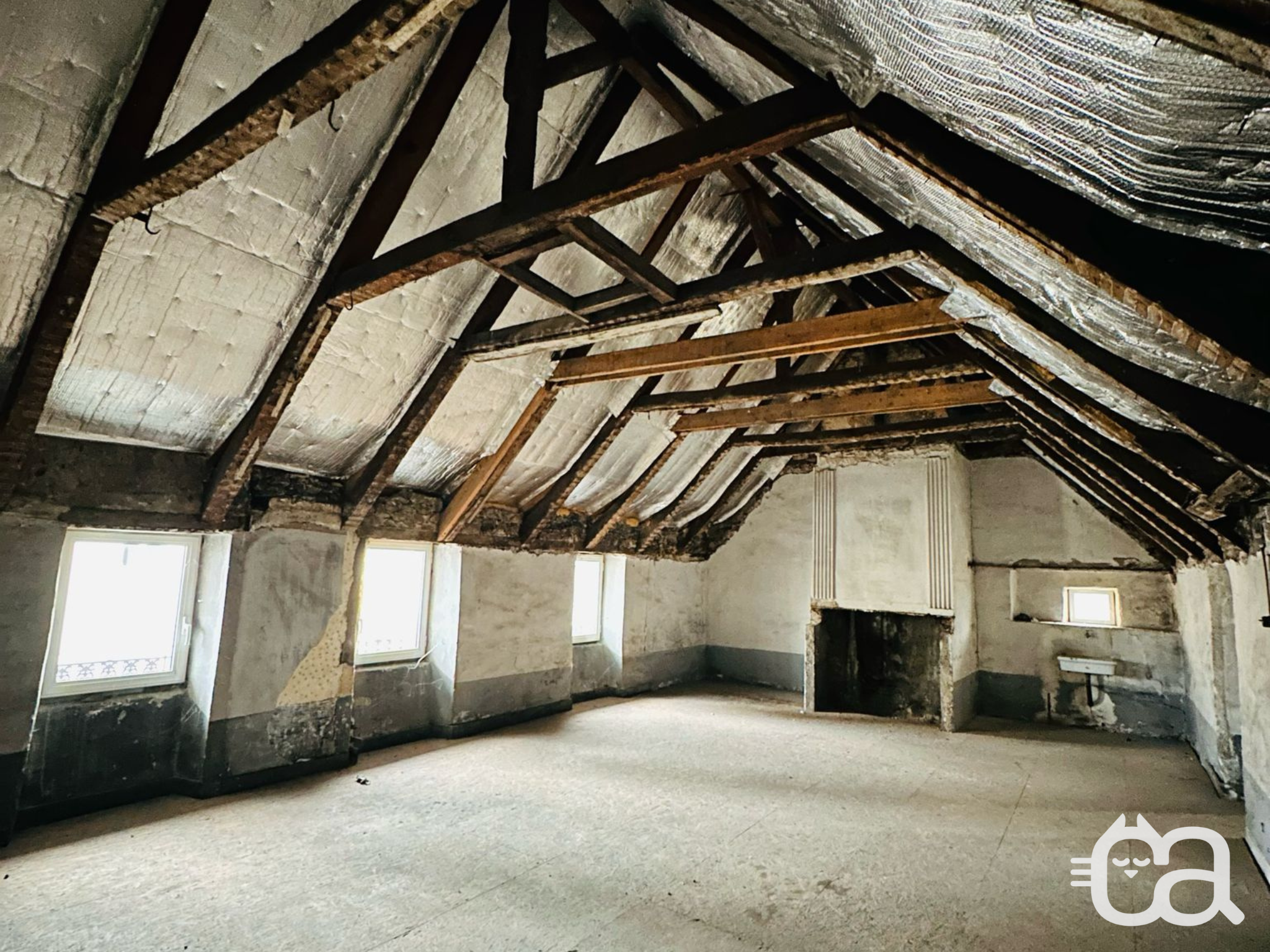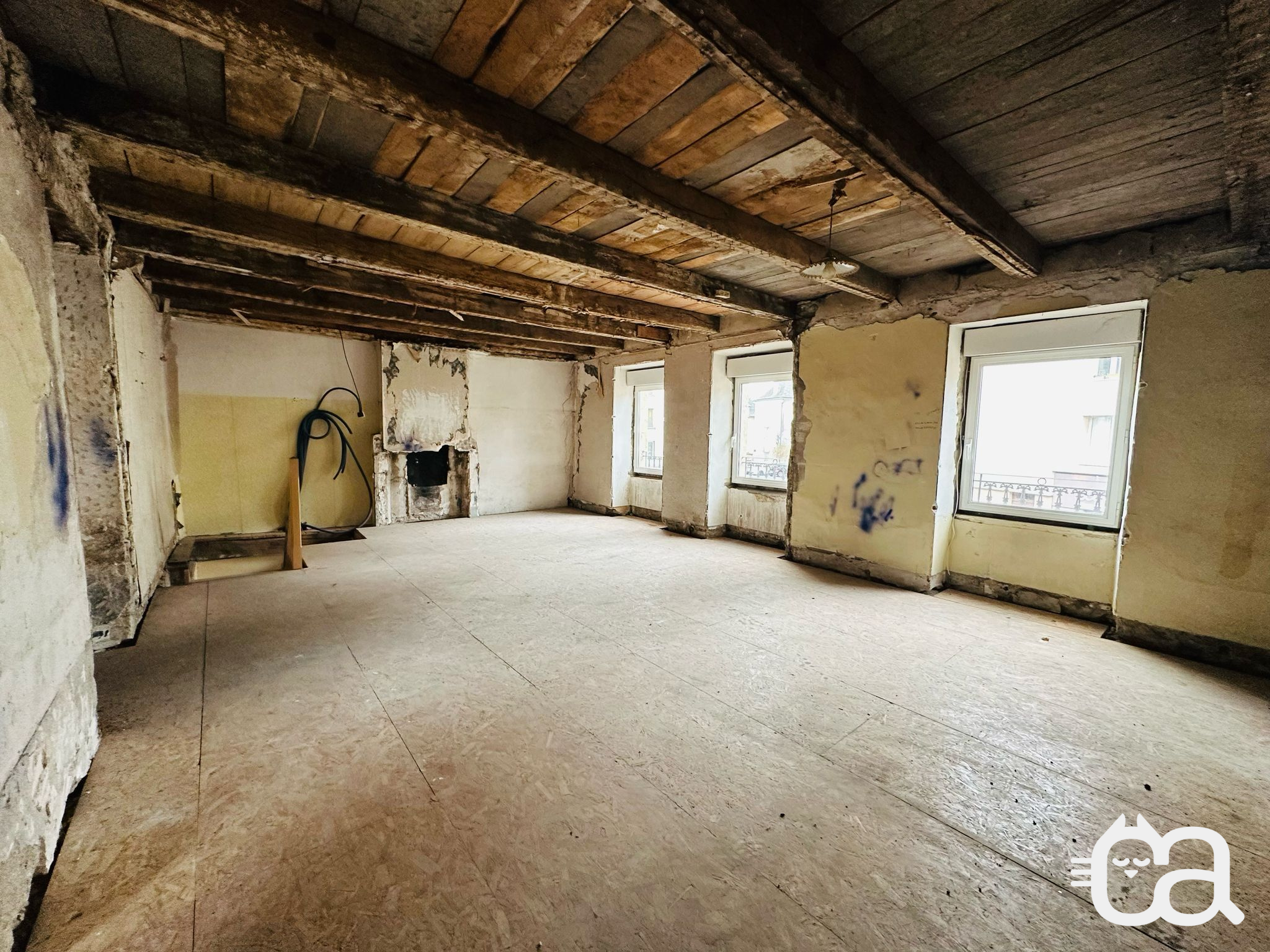 Au-dessus de la salle de restaurant, deux plateaux offrent leurs espaces à aménager, sur deux étages. Hors d'eau et hors d'air, soit en sécurité, ils offrent leur espace brut à l'imagination de leur acquéreur. Accessible par une entrée privée, en haut d'une volée d'escalier, le premier plateau propose deux pièces, avec des fenêtres neuves, équipées de volets roulants. Un point d'eau existant permet d'envisager la création d'un T2 autonome à cet étage. Au deuxième étage, depuis le hall, un second plateau révèle son potentiel de charme avec ses poutres apparentes et ses fenêtres rénovées. Réunis pour former un appartement familial ou séparé en deux T2, ces plateaux peuvent apporter un complément de revenu, avec des locations temporaires ou durables.