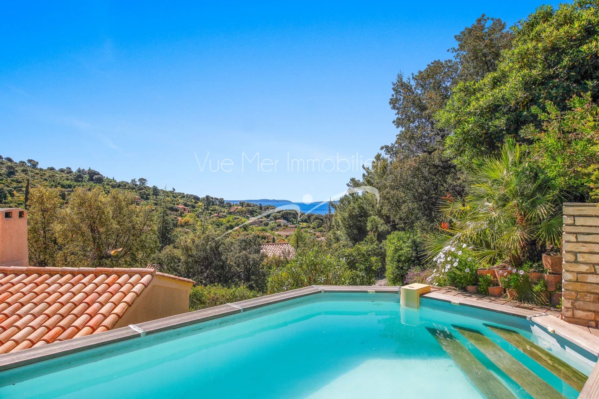 Cette villa a été rénovée avec goût, et bénéficie d'un superbe terrain aux plantations multiples et variées (pour les amoureux de la nature), ainsi que d'une piscine ( 8 X 3 m / électrolyse) sans vis-à-vis avec sa plage en teck et une vue sur la mer.