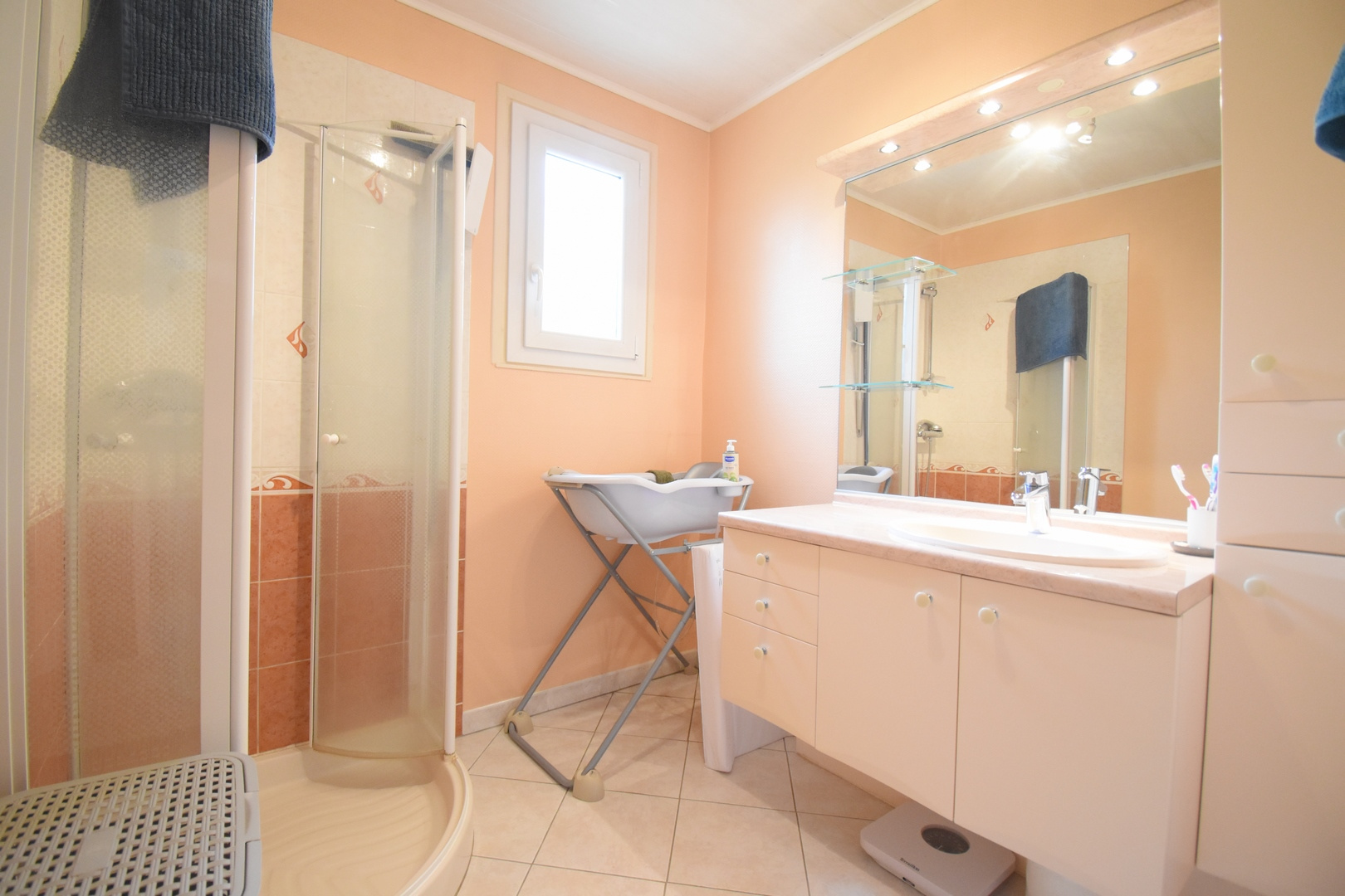 Maison de plain-pied composée d'une entrée, un spacieux séjour-salon avec cheminée, une cuisine équipée et aménagée, 3 chambres, une salle d'eau, un wc.