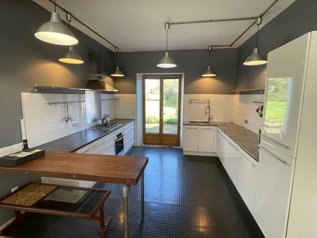 Au rdc : Très belle surface pour la pièce de vie, 75 m2 avec sa cuisine ouverte sur la salle à manger et son espace salon avec poêle à bois.
