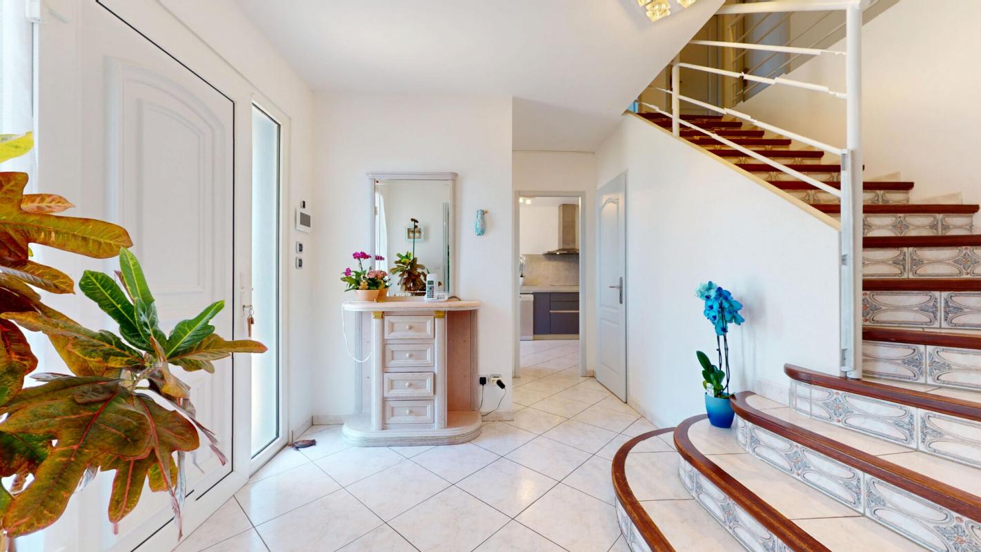 Dès l'entrée, à l'abri des regards, vous serez séduit par un magnifique jardin paysager et entièrement clôturé, agrémenté d'une piscine 8x4 m et de sa vaste plage sécurisée. Ce véritable havre de paix vous mène à une grande terrasse accueillante, donnant directement sur l'entrée de la maison.