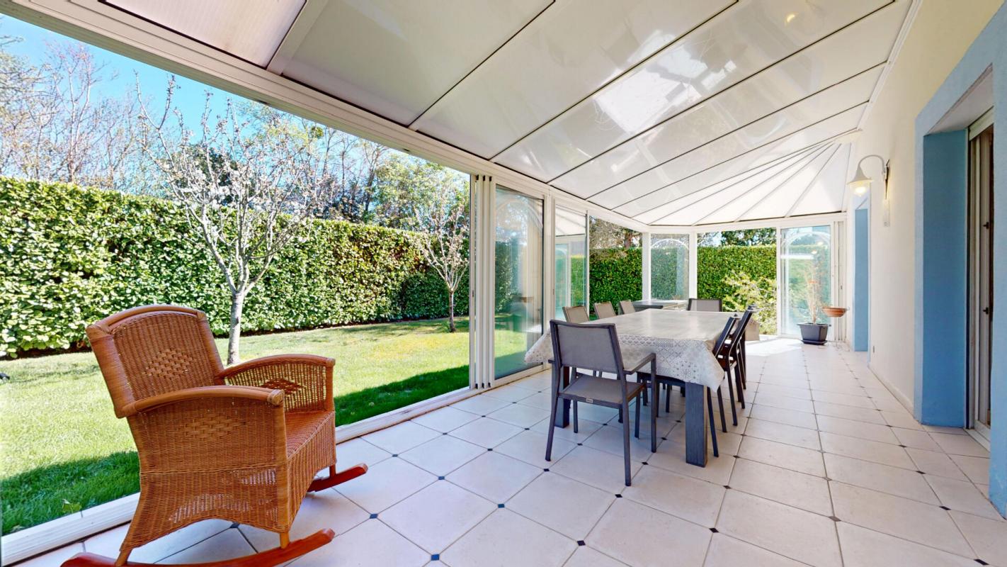 Le rez-de-chaussée vous propose une belle entrée qui dessert un spacieux séjour ouvert sur une salle à manger lumineuse. Trois ouvertures offrent une vue directe sur une véranda entièrement vitrée, s'ouvrant sur l'arrière de la maison, pour profiter pleinement de l'extérieur en toute saison.