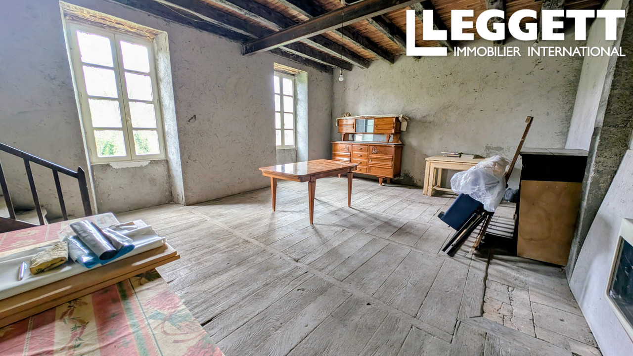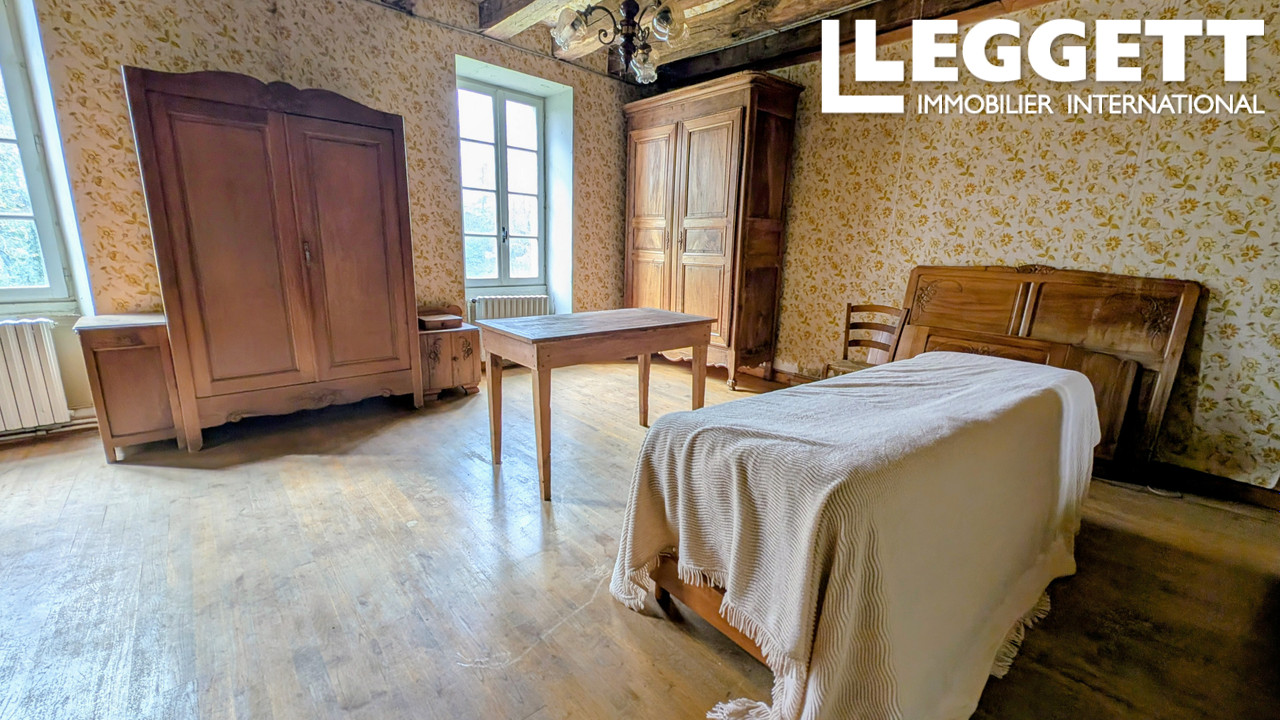 La partie non rénovée (166 m²) est composée de belles pièces spacieuses avec de hauts plafonds : cuisine avec cheminée et souillarde (47 m²), salon (36 m²), 2 chambres (31 et 47 m²), combles et pigeonnier aménageables (89 m² au sol).