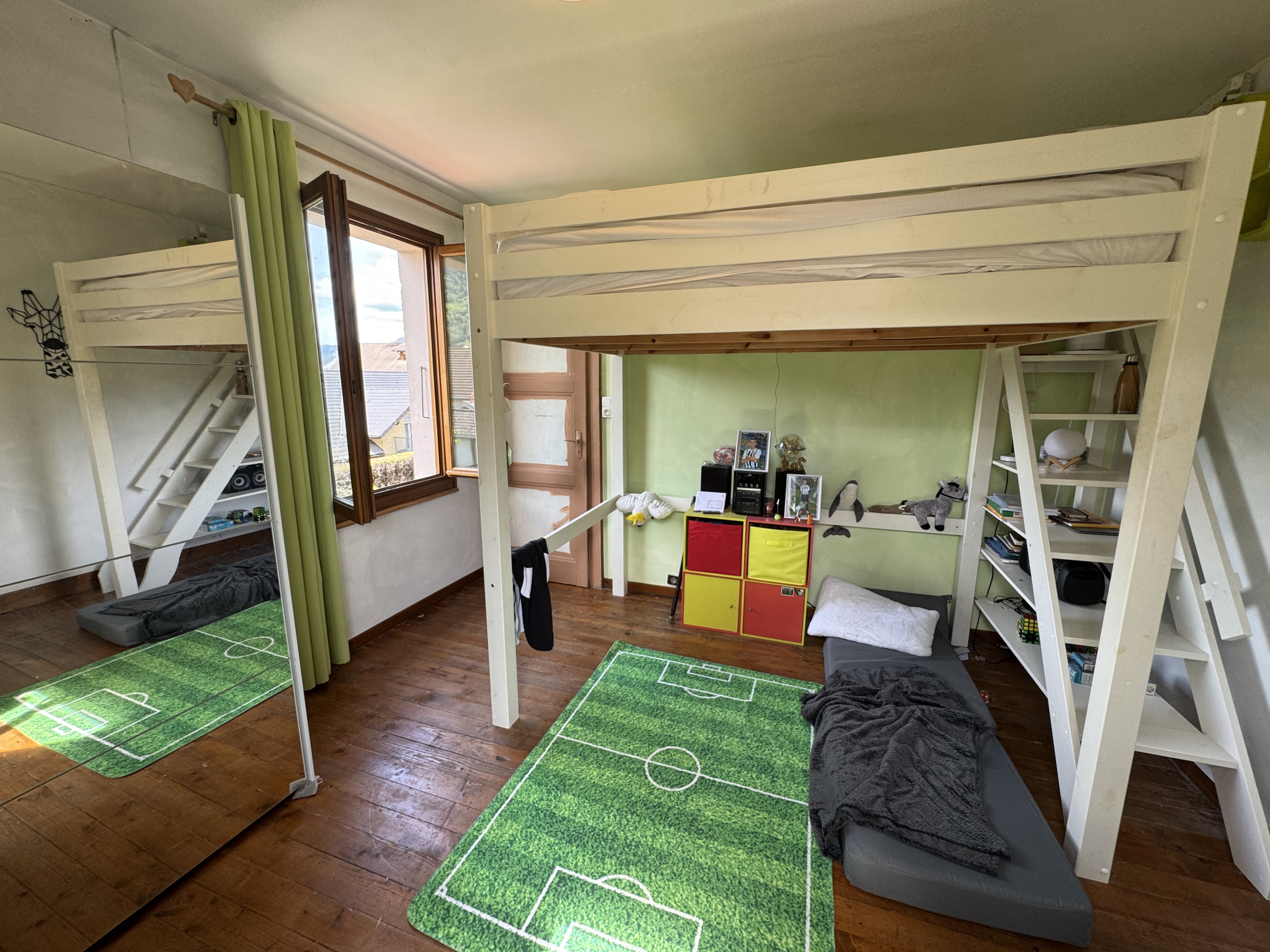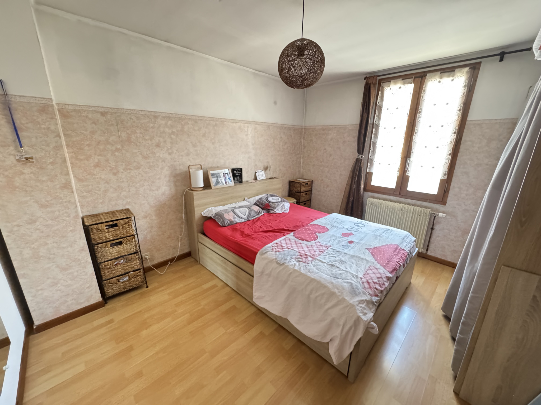 A l'étage, un couloir desservant 4 chambres ainsi qu'un accès au combles aménageables.