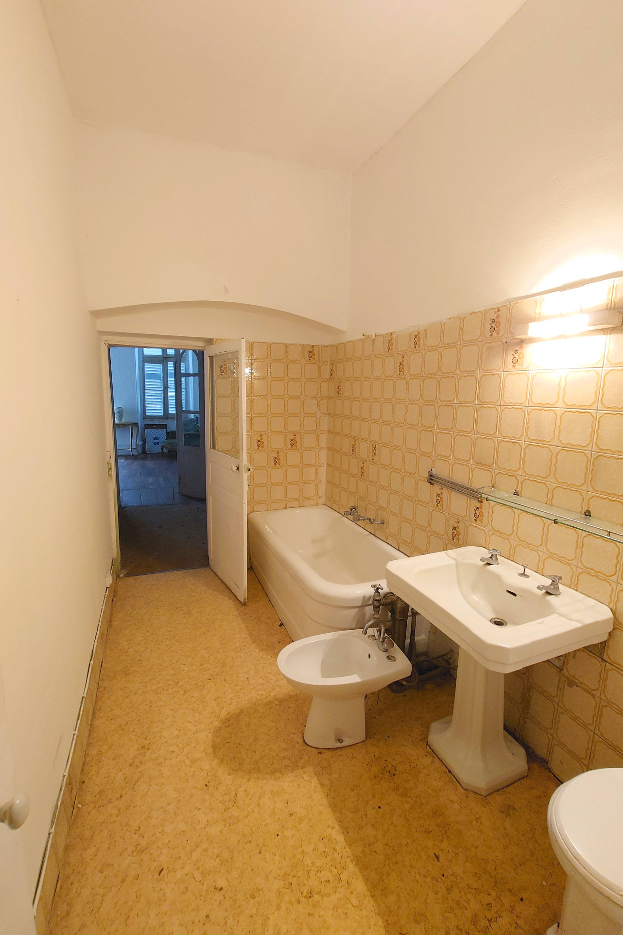 En rez de chaussée, on trouve un local commercial de 112 m2 dont la partie principale mesure 74 m2 avec une réserve de 38 m2 avec WC et qui peut être loué 450 euros par mois.