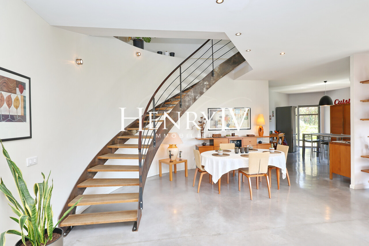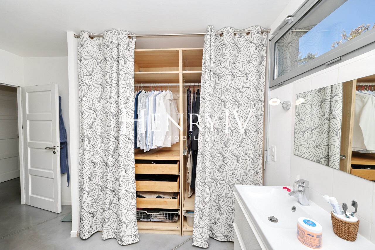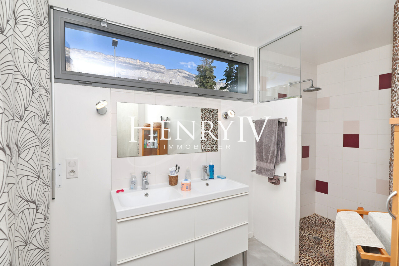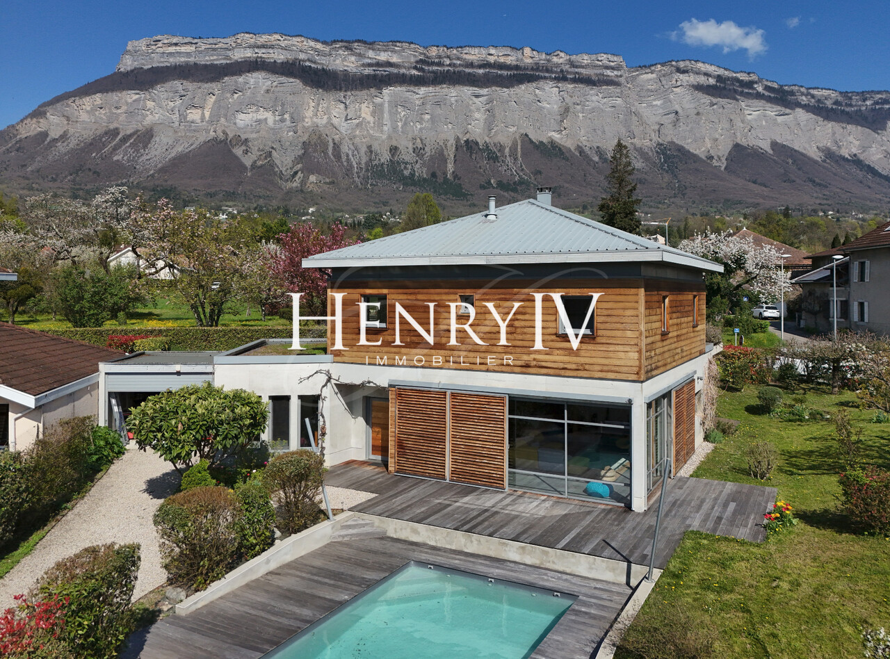 Meylan : Belle maison d'architecte de 2010 d'environ 212m² composée en rez-de-jardin, d'une entrée, d'un magnifique salon très lumineux avec vue exceptionnelle sur la chaîne de Belledonne, doublé d'une salle à manger, d'une cuisine, d'une buanderie/ cellier, d'une chambre et d'une salle d'eau ; A l'étage, 4 chambres dont 2 avec dressing, une salle de bains et une salle d'eau avec wc. Le chauffage est alimenté par une pompe à chaleur + climatisation réversible + poêle à bois et en annexes, la maison possède un garage, une cave et un local technique. Le terrain clos et arboré de 1017 m2 est agrémenté d'une piscine de 7m x 4m. Négo : Maud CSORDAS.