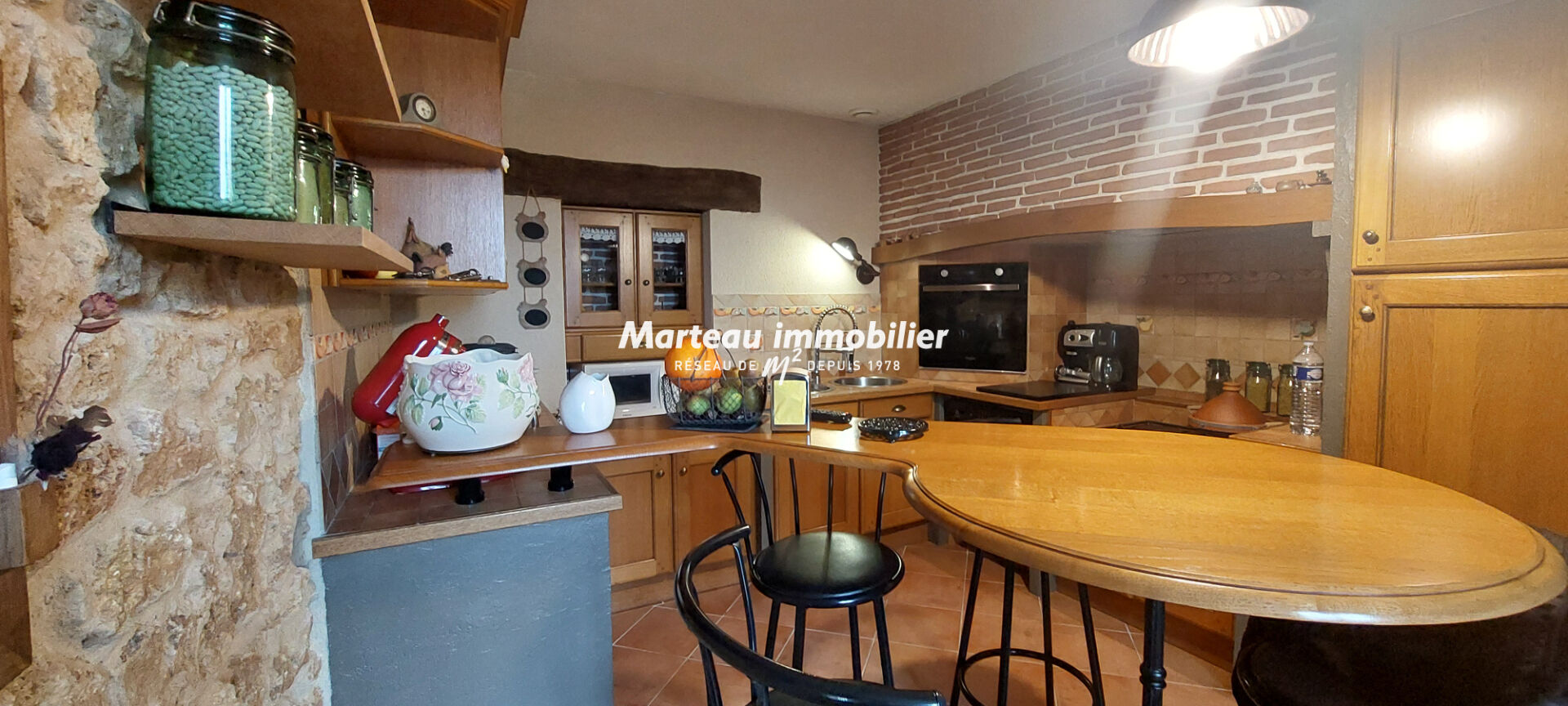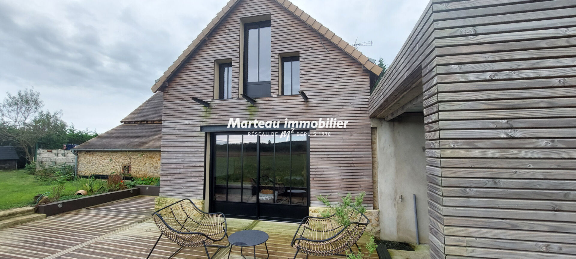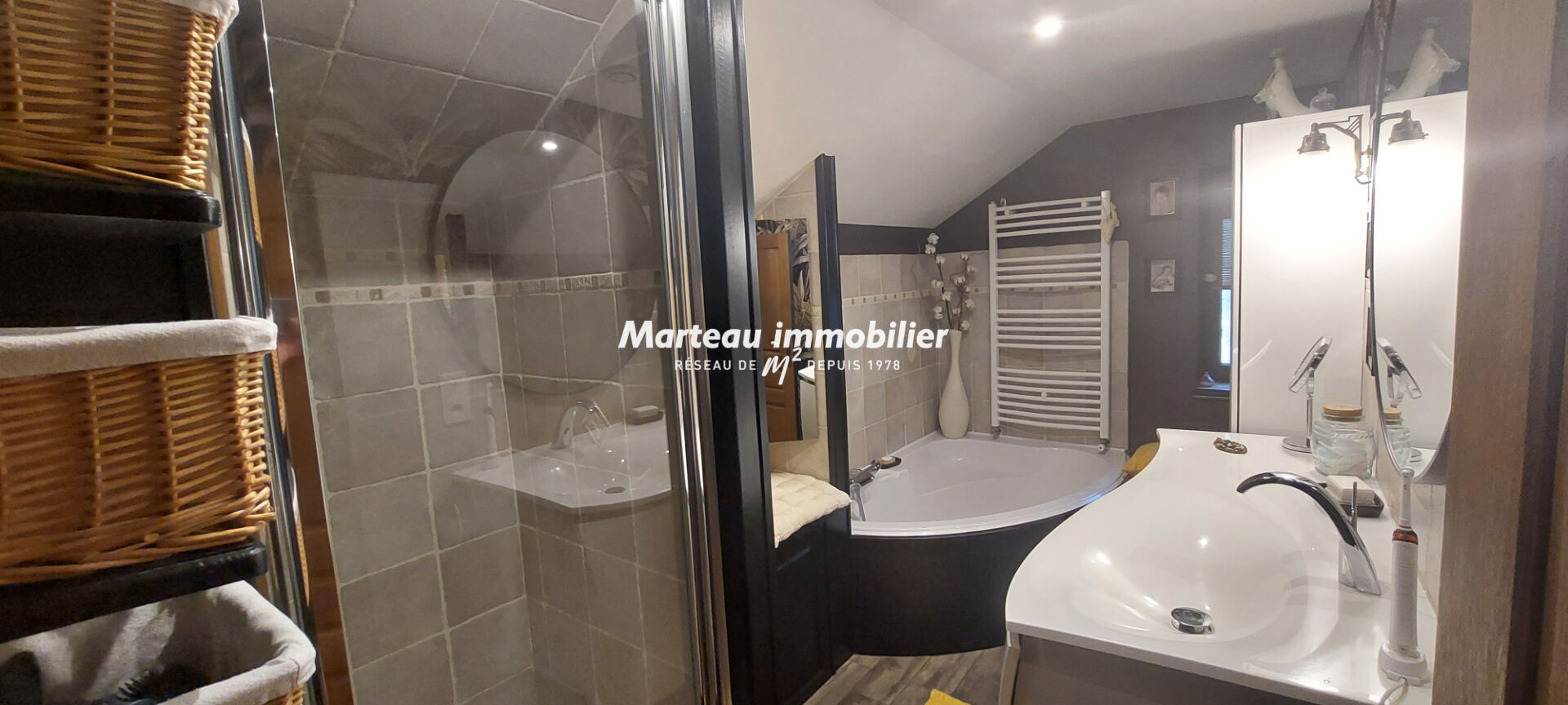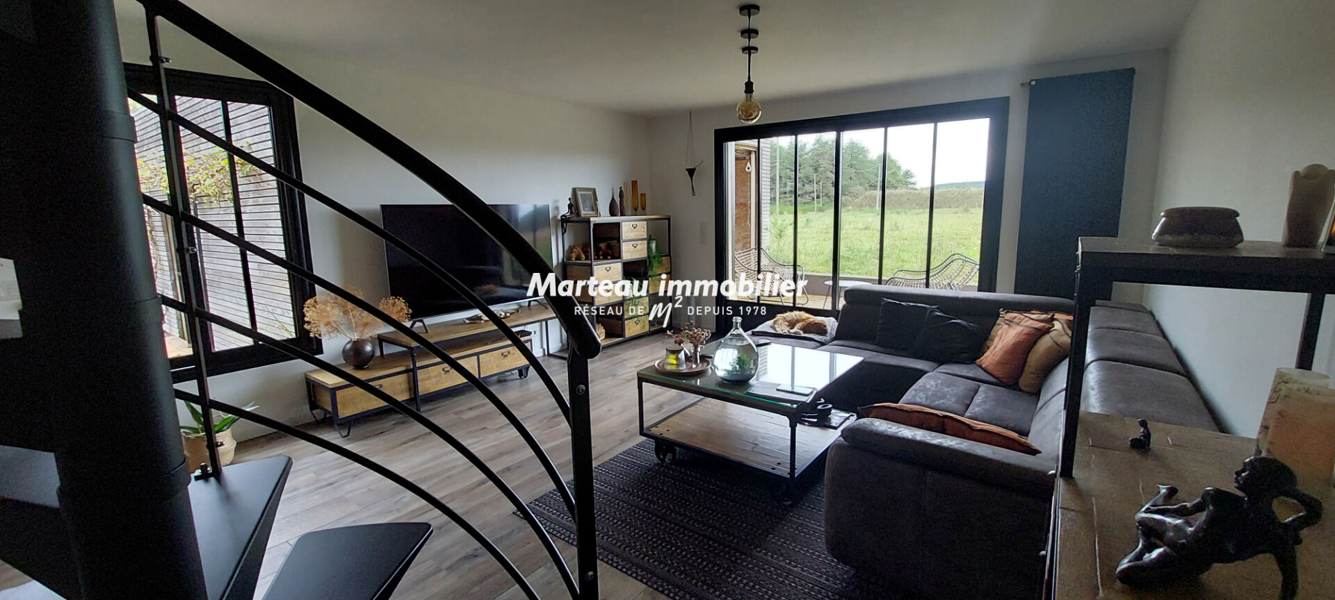 Profitez d'un séjour chaleureux avec cheminée et four à pain, cuisine équipée, bureau, salle de bains, dressing et un second salon lumineux. À l'étage, suite parentale avec douche, deux belles chambres et possibilité de salle d'eau. À l'extérieur, cuisine d'été, deux terrasses, garage et atelier sur un terrain arboré d'env 1 200 m², en pleine campagne.
