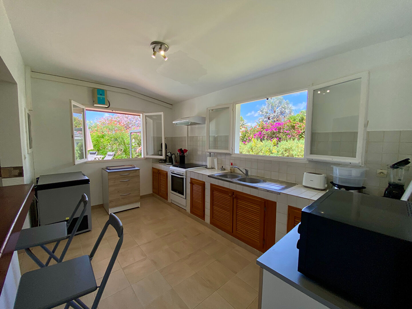 À l'extérieur, vous serez séduits par les aménagements pensés pour la détente et la convivialité : une piscine, un carbet, un terrain de pétanque, ainsi qu'un espace de stationnement couvert pouvant accueillir jusqu'à quatre véhicules.