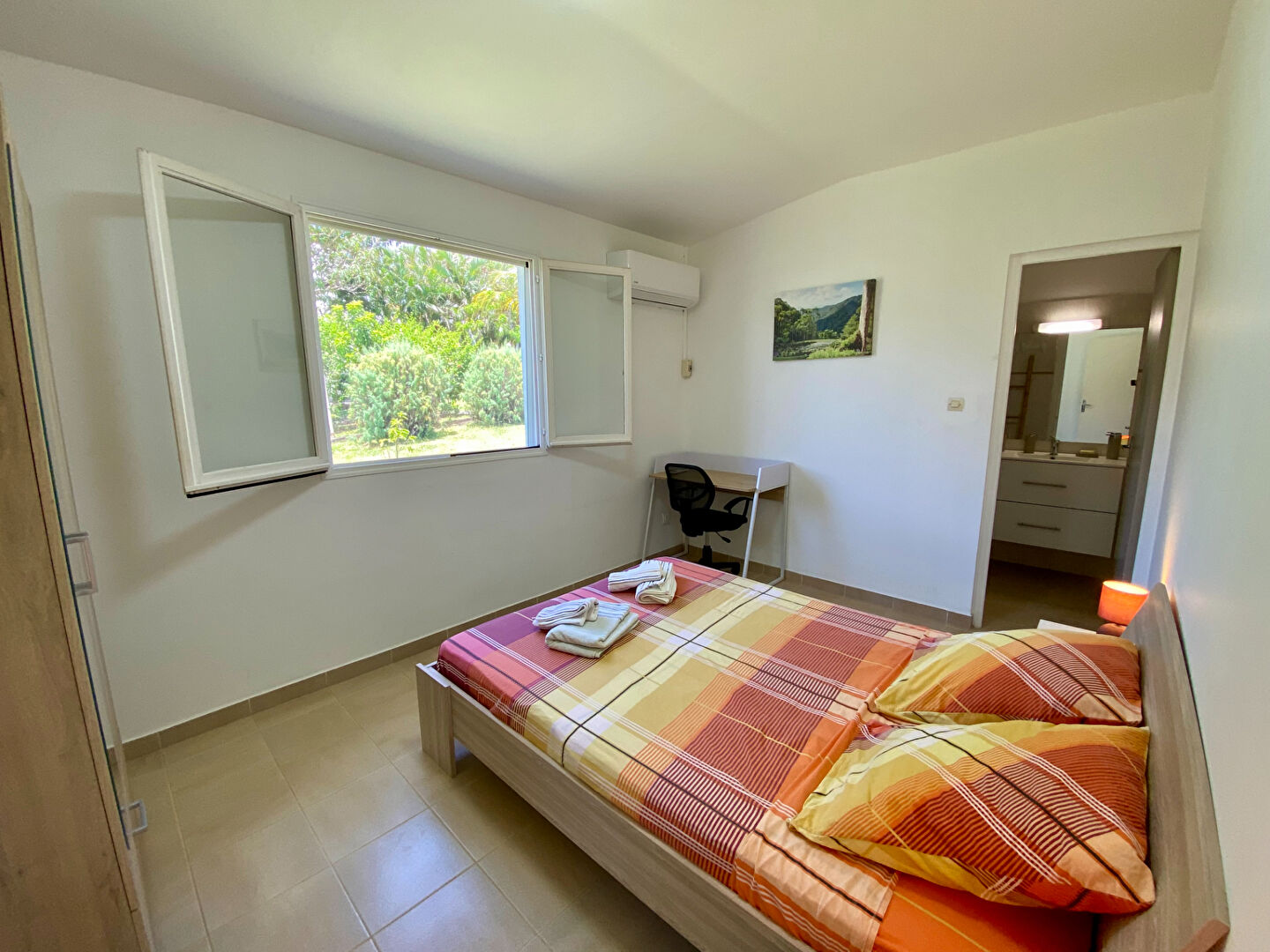 Elle se compose d'un vaste séjour lumineux avec une belle hauteur sous plafond, d'une cuisine ouverte accompagnée de sa buanderie, 3 chambres climatisées, dont une suite parentale avec salle d'eau et WC, une salle d'eau avec wc ainsi qu'une grande terrasse couverte en L.