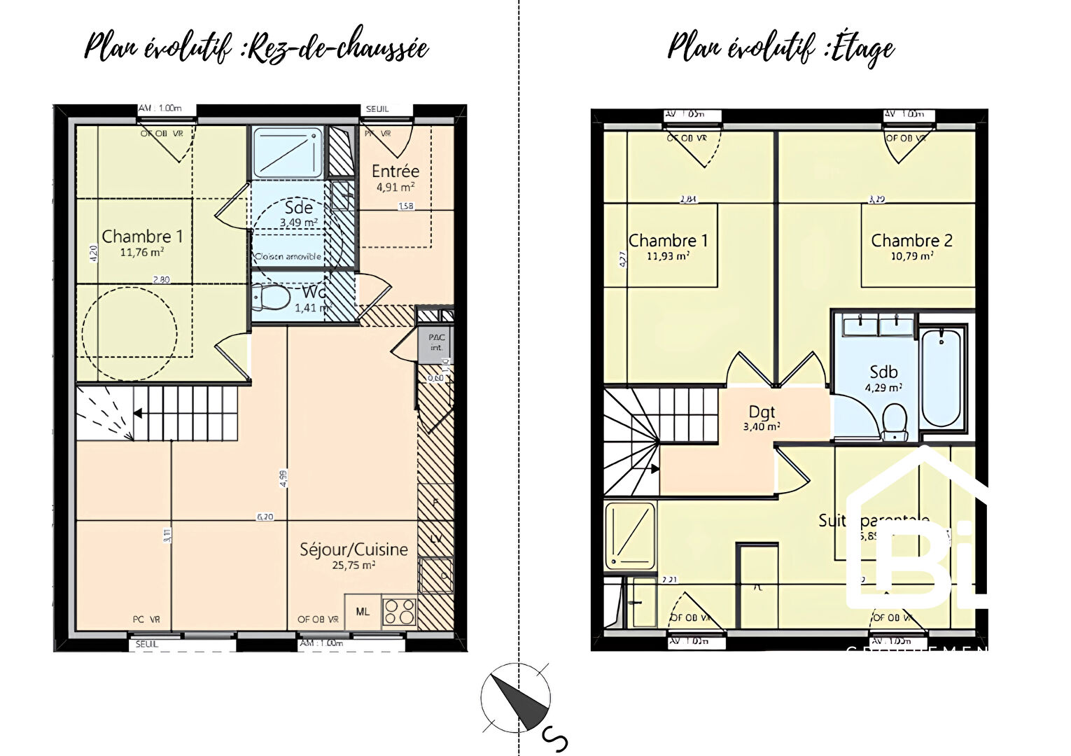 MAISON ÉVOLUTIVE - LES PLANS PEUVENT ÊTRE MODIFIÉS AFIN DE CRÉER UNE VIE DE PLAIN-PIED / UNE SUITE PARENTALE À L'ÉTAGE.
