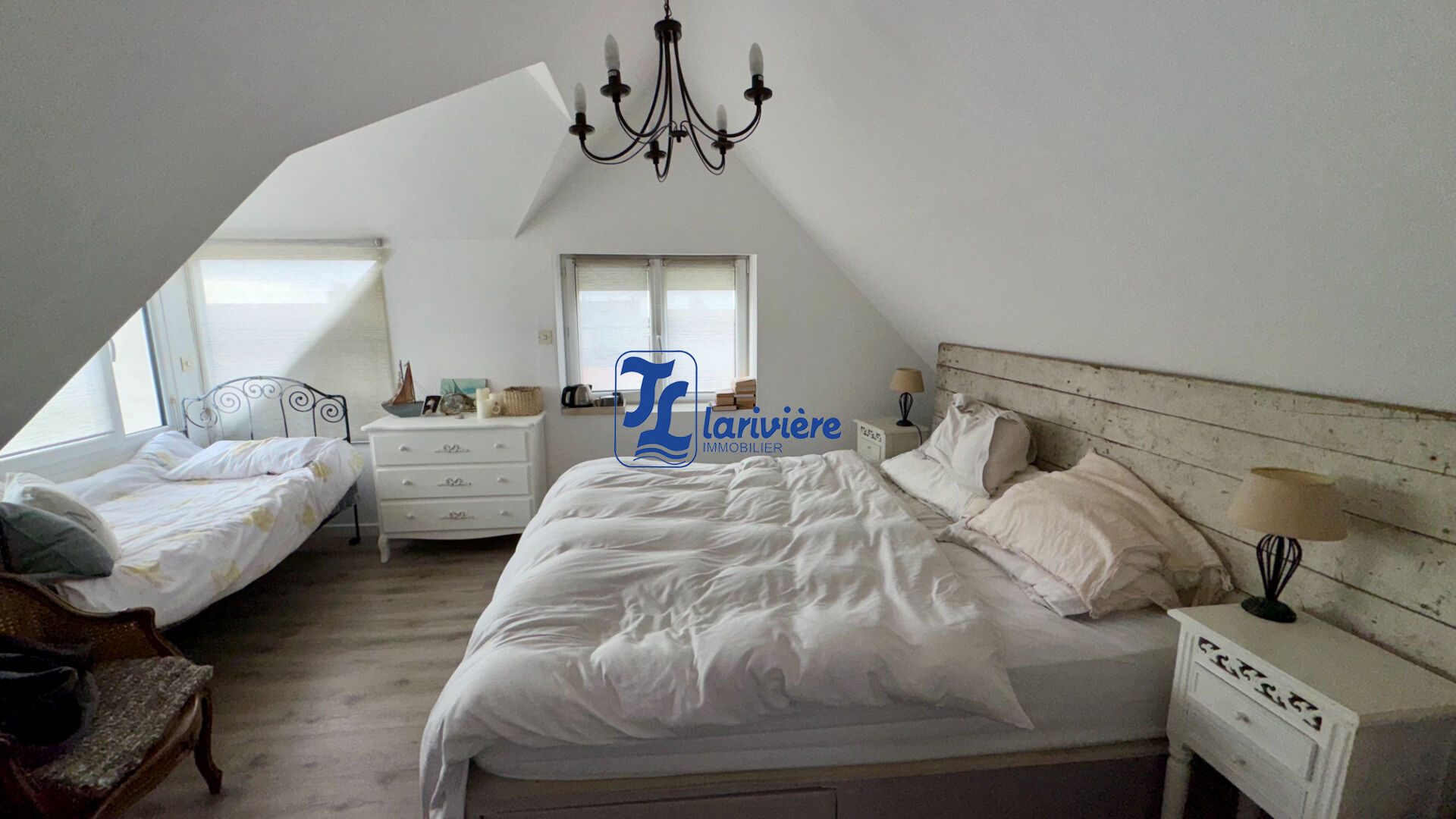 Sous combles : une chambre et une salle de bains. wc. vue mer au loin;