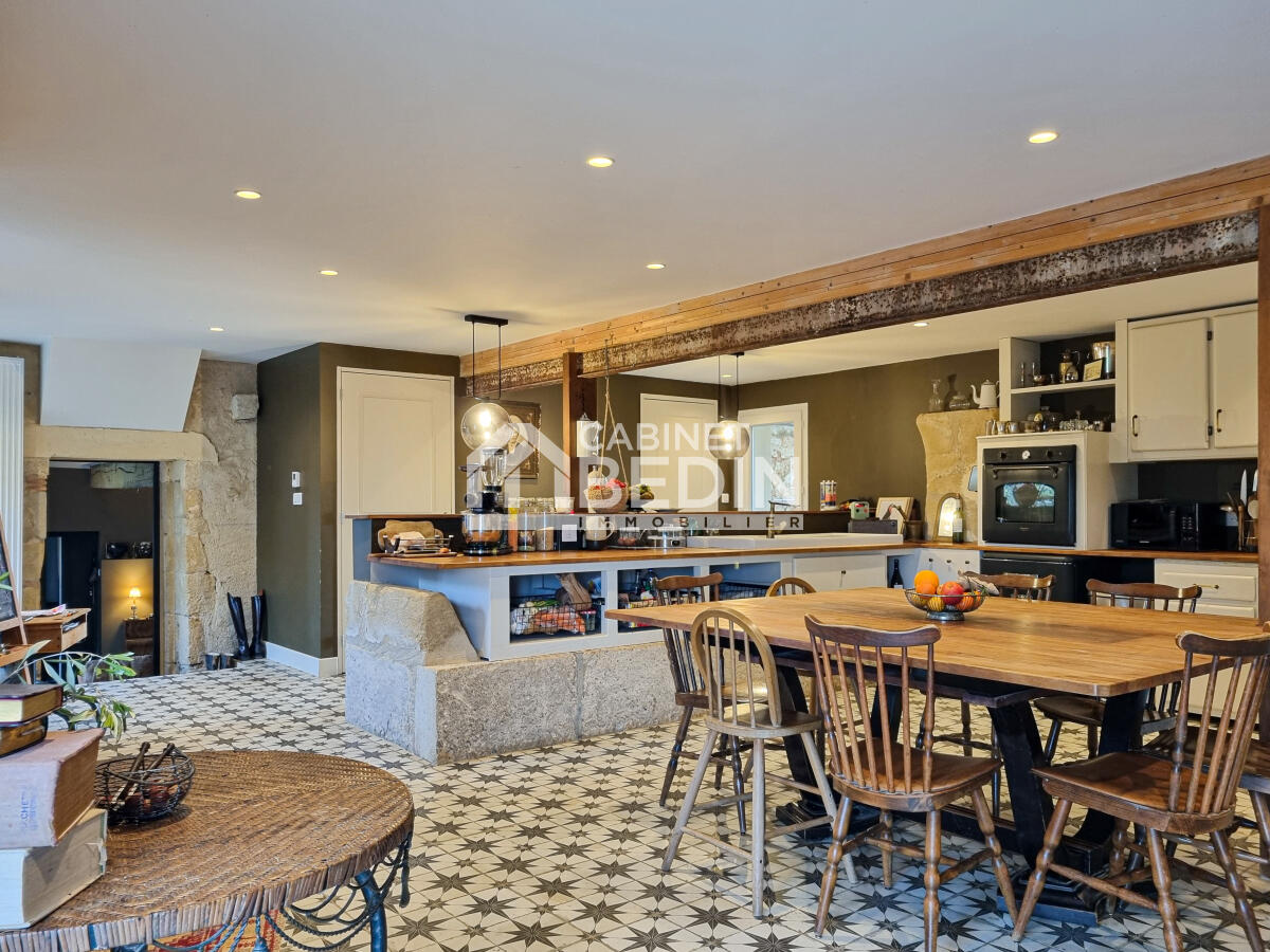 10 MINUTES DE LA REOLE. Située dans un écrin de verdure à 10 minutes de La Réole, cette maison en pierre a conservé tout le cachet de son époque tout en ayant été rénovée avec soin, elle vous offre un cadre de vie exceptionnel en bord de Garonne. Idéale pour les amoureux de la nature et de l'authenticité, cette maison allie le charme de l'ancien à un confort moderne. Au rez-de-chaussée : une belle pièce de vie lumineuse, un salon cosy et une grande cuisine équipée, parfaite pour recevoir vos invités. A l'étage : une suite parentale ouvrant sur une très grande terrasse avec piscine, deux chambre, une salle et un appartement indépendant composé d'une pièce de vie avec cuisine ouvrant sur la terrasse et la piscine, deux chambres, une buanderie et une salle d'eau. Un dégagement et deux chambres dans les combles. Très belles dépendances (boxes à chevaux, sellerie et grand chai). Jardin arboré et manège à chevaux.