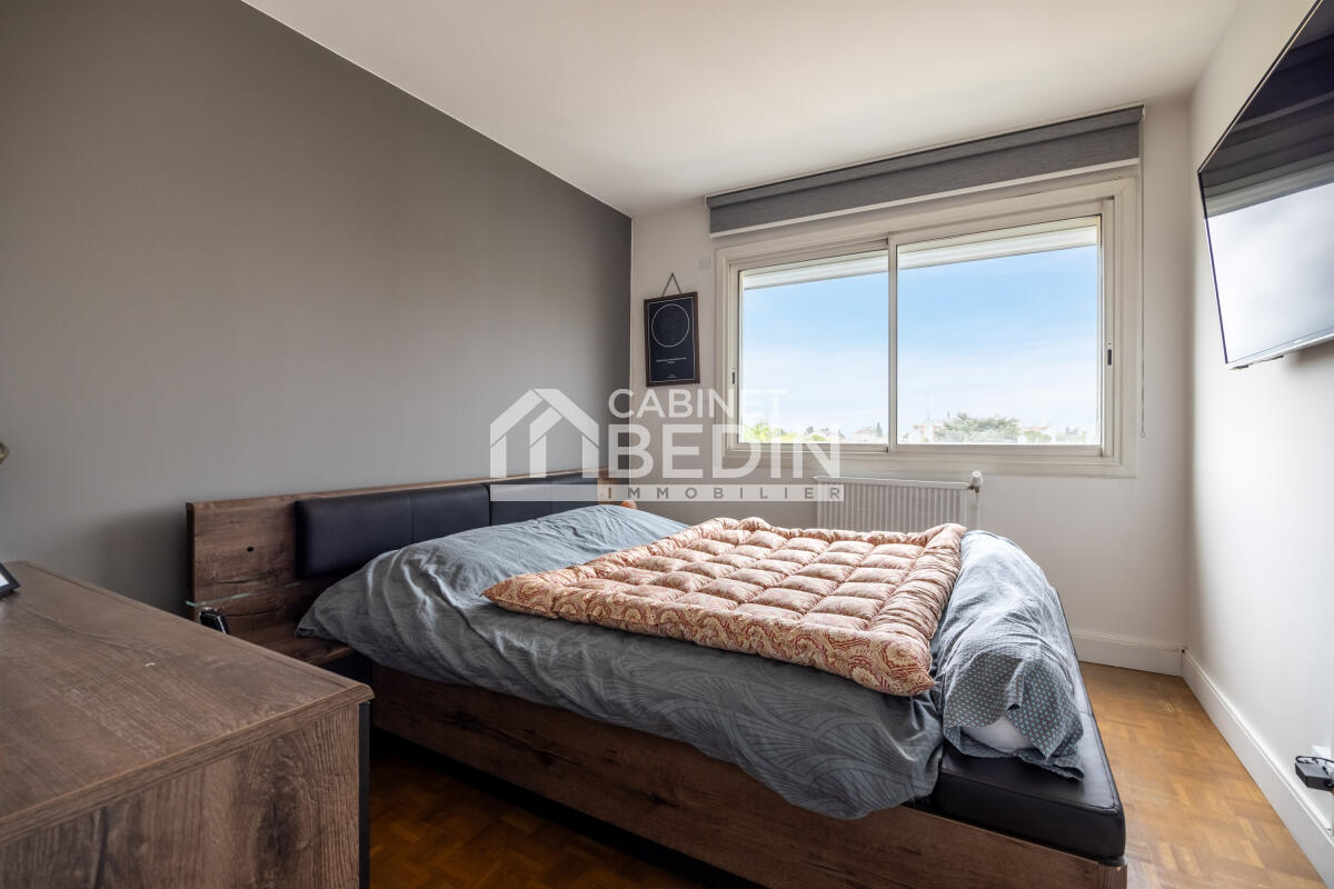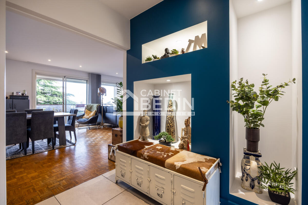 L'appartement est lumineux, traversant SUD EST-NORD OUEST et calme. L'appartement a été rénové avec goût récemment. Il est composé de 2 chambres, une cuisine séparée, un double séjour, ainsi qu'un grand dressing. Il compte aussi une belle entrée contemporaine, une salle d'eau moderne ainsi que des WC séparés. Le séjour ORIENTE SUD EST s'ouvre sur une TERRASSE de plus de 13 m2 avec une vue arborée avec les Pyrénées au fond. Les fenêtres et baies vitrées ont été changées, des volets roulants électriques ont été installés, l'électricité a été refaite et un faux plafond avec isolation a été installé dans la pièce de vie. La pose de climatisation est déjà autorisée. Un PARKING et une CAVE complètent le bien.