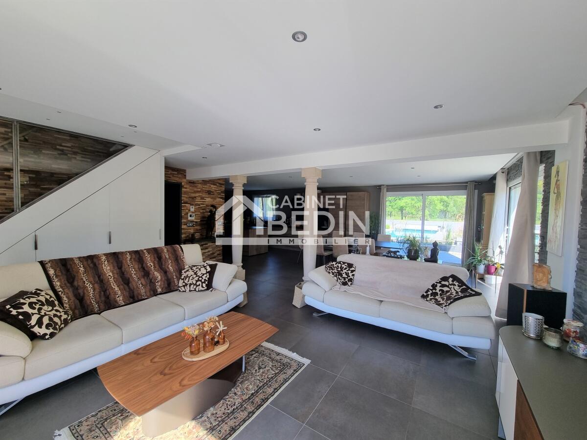 Exclusivité CABINET BEDIN - Maison Contemporaine. Idéalement située à proximité du collège et du centre, cette charmante maison familiale offre un grand terrain, parfait pour profiter des activités en plein air. Elle comprend quatre chambres spacieuses, dont une suite parentale avec un somptueux dressing digne de ce nom, ainsi que deux bureaux parfaitement adaptés pour le télétravail. Vous apprécierez également la grande piscine, qui ajoute une touche de loisirs à votre quotidien. Ne manquez pas cette opportunité !. Les informations sur les risques auxquels ce bien est exposé sont disponibles sur le site Géorisques : www. georisques. gouv. fr. Montant estimé des dépenses annuelles d?énergie pour un usage standard : entre 1220 et 1720 Euros/an (année de référence 2022)