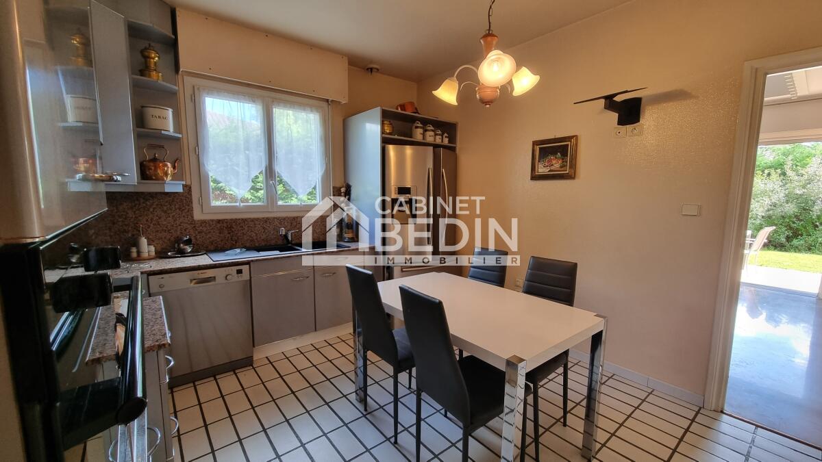 CUGNAUX - VILLA COSSUE PISCINE, GARAGE & SOUS/SOL. Villa cossue avec piscine, grand sous-sol et jardin paysagé, proche du Bois de Rachety. Située au calme, cette villa des années 1970 séduira les amateurs de confort et d?espace. Dès l?entrée, un sol en travertin vous guide vers un séjour double lumineux, orienté plein sud, avec cheminée et accès à une terrasse ensoleillée. La cuisine séparée, aménagée en 2000, offre des éléments 'Teysser' et un plan de travail en granit. Elle s?accompagne d?une vaste buanderie/bureau pouvant devenir une chambre. La maison comprend quatre chambres confortables et une salle de bain avec baignoire et douche. À l?étage, une grande salle de jeux avec cheminée et point d?eau crée un espace convivial modulable. En sous-sol, une cave de 33 m² dessert un garage de 55 m². À l?extérieur, le jardin paysagé accueille une piscine 5×10 m et un pool house agréable. Chauffage au sol performant par chaudière à condensation (RDC), plancher chauffant à l?étage, alarme, portail motorisé et climatisation complètent ce bien rare à visiter sans tarder. . Les informations sur les risques auxquels ce bien est exposé sont disponibles sur le site Géorisques : www. georisques. gouv. fr. Montant estimé des dépenses annuelles d?énergie pour un usage standard : entre 3680 et 5040 Euros/an (année de référence 2025)