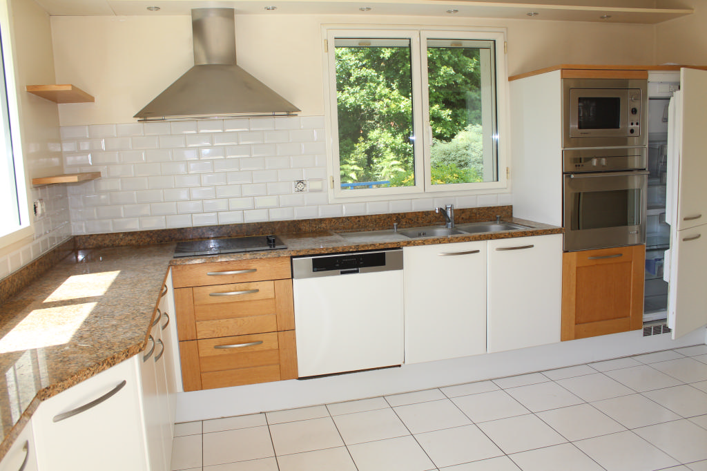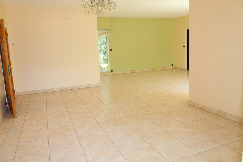RDC: entrée, double séjour, cuisine équipée, arrière-cuisine, 2 chambres, salle de bains et salle d'eau, 2 wc, cellier, garage.
