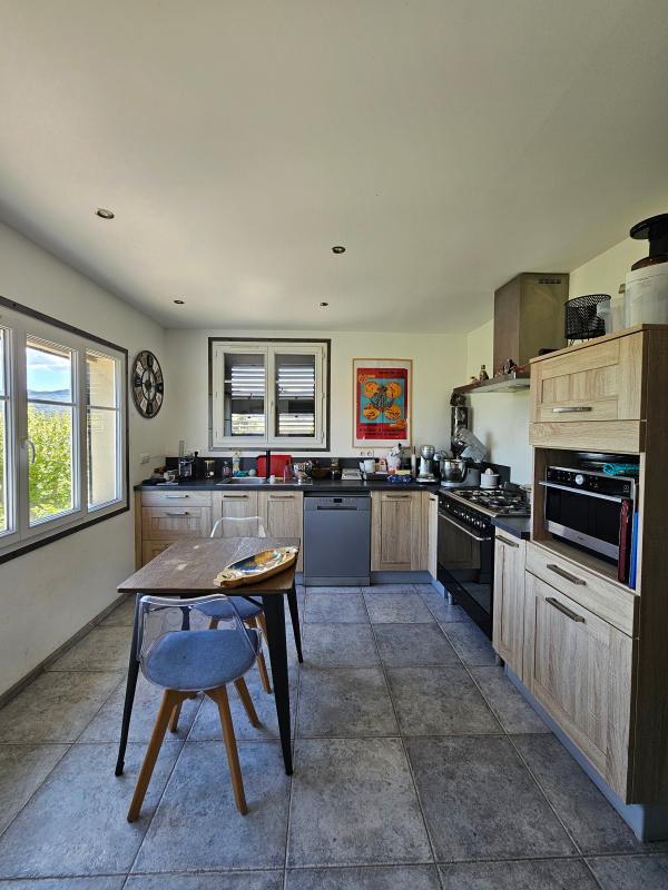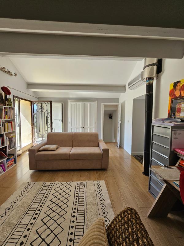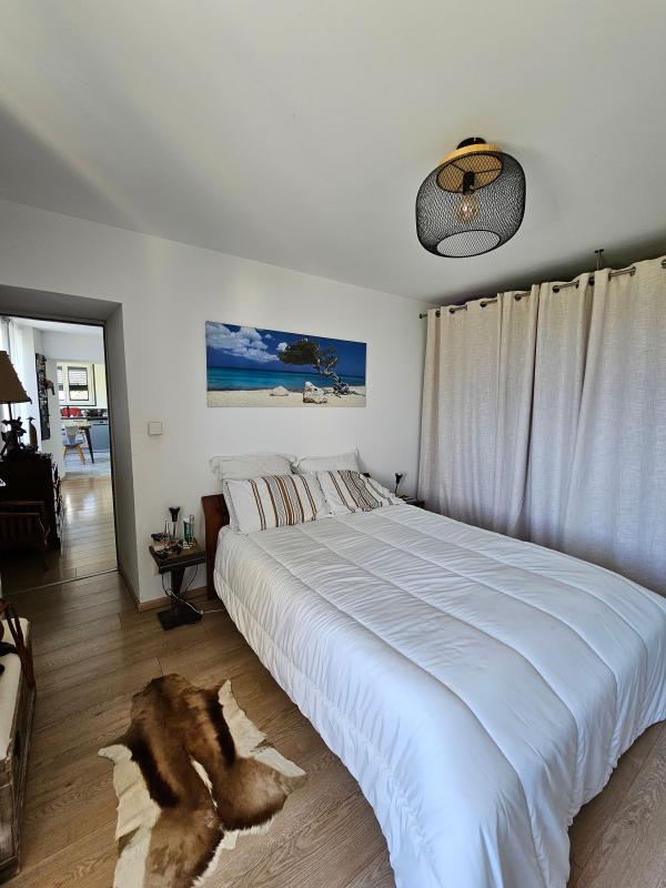 À l'étage supérieur : une grande chambre et un second salon (facilement aménageable en troisième chambre), s'ouvrant sur une vaste terrasse avec vue dégagée.