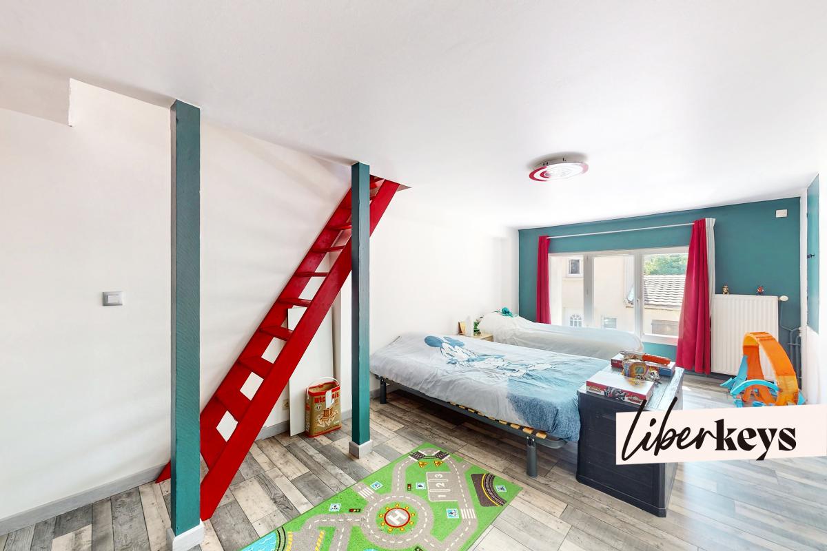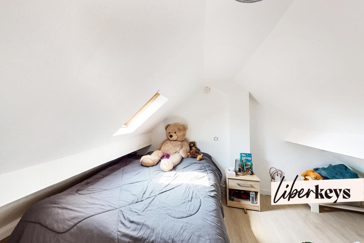 Elle se compose : Au rez-de-chaussée : une entrée donnant sur une cuisine aménagée et équipée, une salle d'eau avec WC, et un séjour lumineux avec un espace bureau idéal pour le télétravail. Au 1er étage : un palier dessert deux chambres avec placards. Dans l'une des chambres, un escalier permet d'accéder aux combles aménagés, qui font office de troisième chambre, chaleureuse et fonctionnelle.