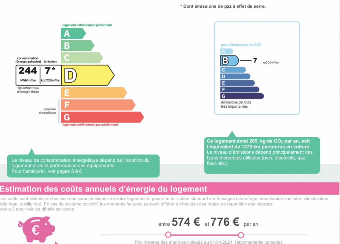 Montant estimé des dépenses annuelles d'énergie pour un usage standard entre 574 et 776 euros indexées aux années 2021, 2022 et 2023 (ou 2021 uniquement) (si logement F ou G 'Logement à consommation énergétique excessive : classe F ou G')