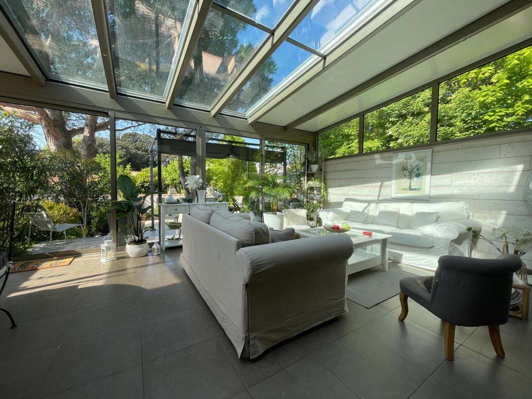 Vous profiterez également d'une agréable véranda chauffée et climatisée, donnant sur un jardin arboré, parfait pour vos moments de détente en toute saison.