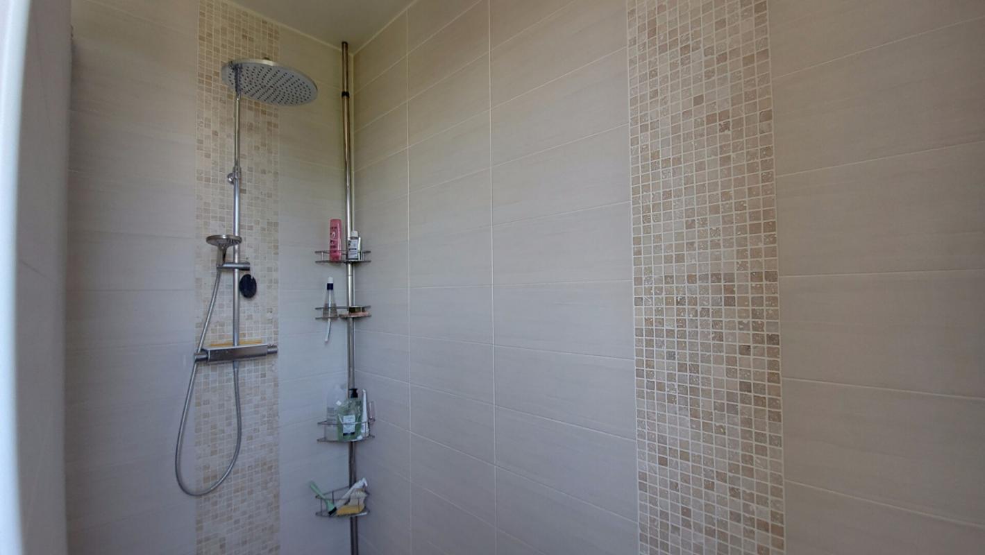 Une grande terrasse abritée est accessible par la cuisine et le séjour.