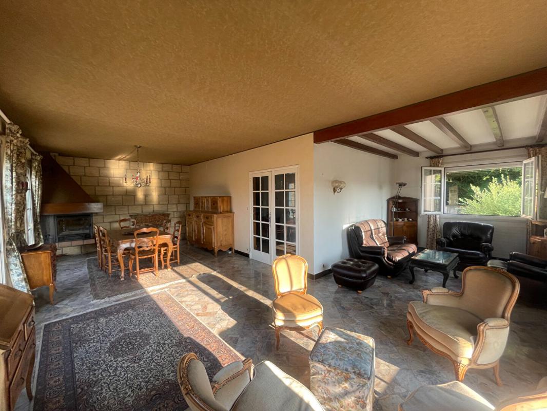 Un bel espace de vie lumineux, salon séjour de 47 m2 avec cheminée insert , un balcon confortable avec son espace barbecue et surtout la vue sur Alès .