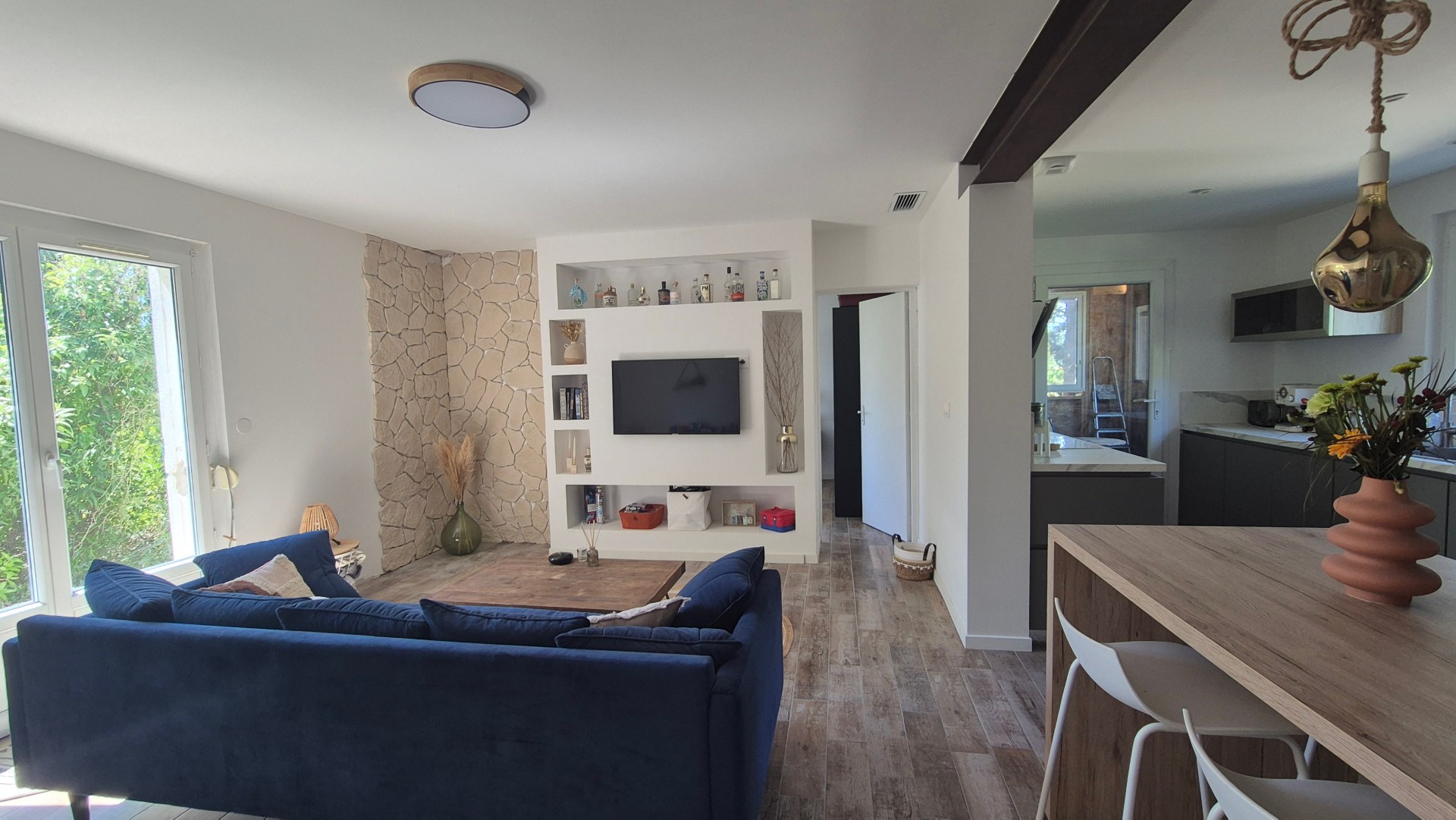 La maison se compose d'une agréable pièce de vie lumineuse avec une cuisine semi-ouverte, donnant l'accès à une terrasse bois, idéale pour partager des moments conviviaux en famille ou entre amis. Vous trouverez également deux chambres confortables, une salle d'eau moderne et une buanderie pratique.