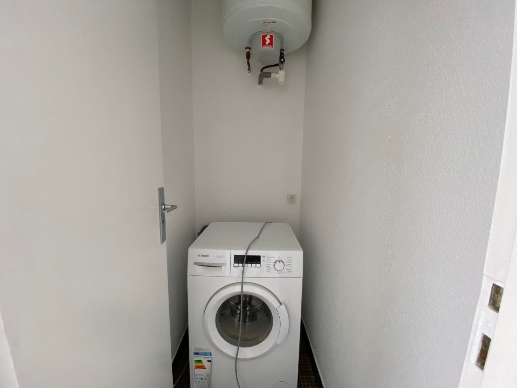 Pièce de vie avec cuisine aménagée, une Chambre, Salle d'eau, Wc, Dégagement et buanderie.