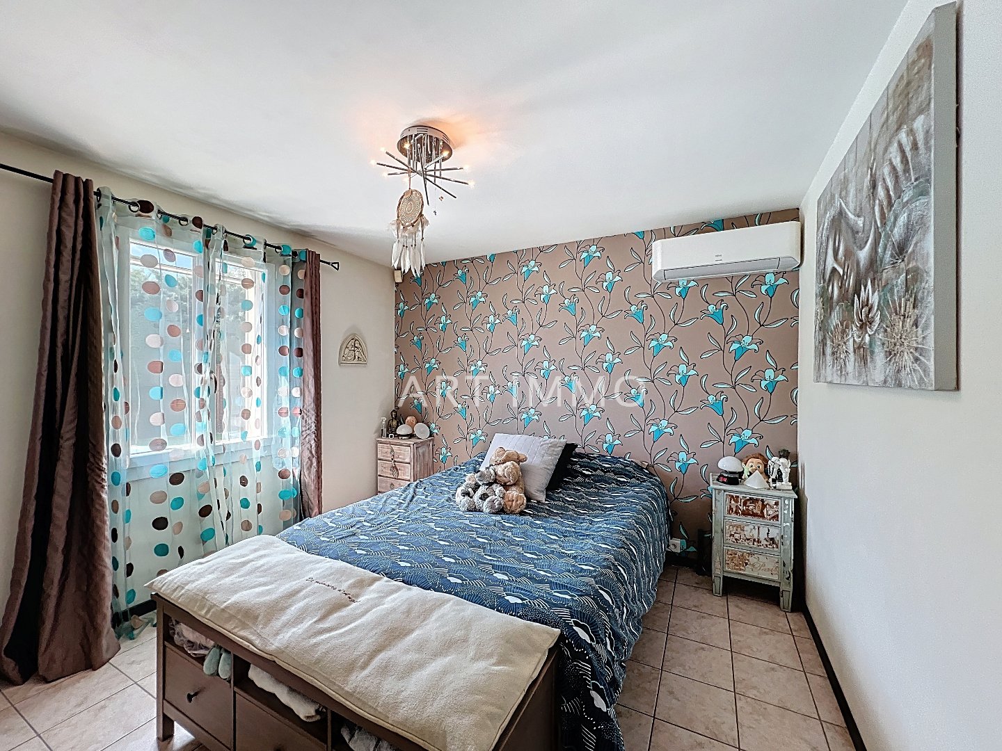 Belles prestations avec chauffage au gaz de ville, insert à bois, cinq climatisations reversibles, double vitrage PVC, moustiquaires, adoucisseur d'eau, arrosage automatique par goutte à goutte, portail automatique et visiophone.